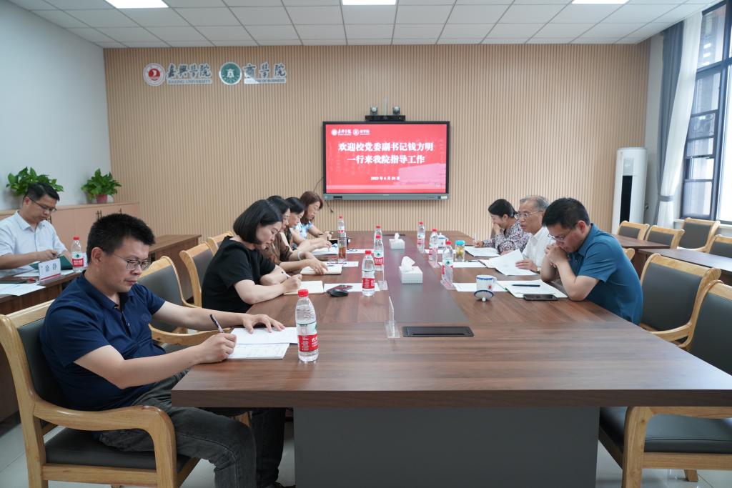 620日下午,校党委副书记钱方明到必赢766net手机版开展2023届毕业生就业工作调研, 学生工作处处长葛建伟随同调研。必赢766net手机版院长潘煜双、党委书记邵燕、党委副书记潘欣和相关系主任、辅导员参加会议。