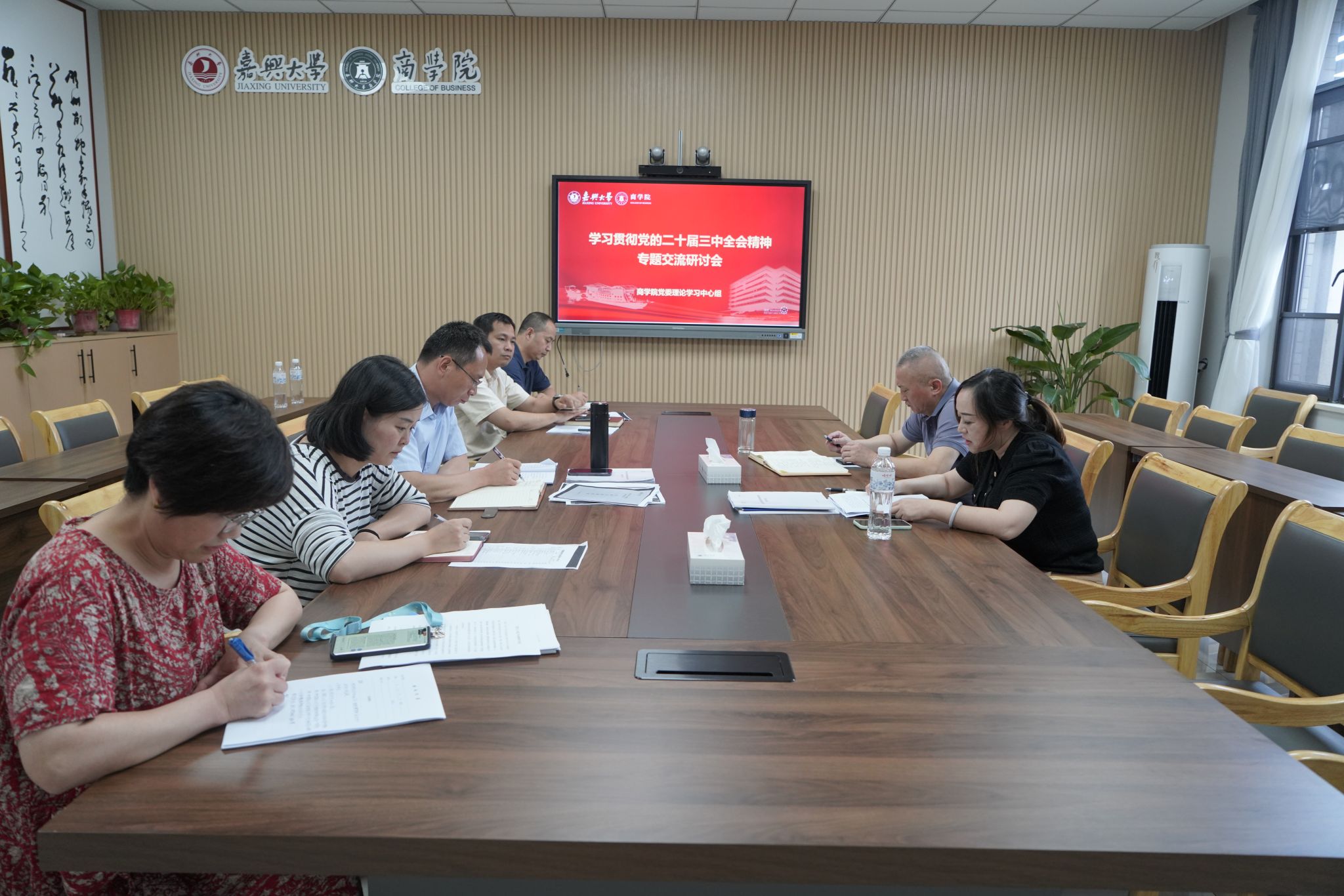 815日下午必赢766net手机版党委理论学习中心组尚德楼345会议室召开专题学习研讨会,围绕党的二十届三中全会精神开展专题学习研讨。党委理论学习中心组全体成员参加会议。党委书记虞岚主持会议。