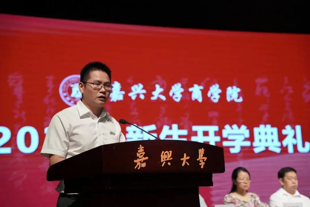 开学典礼在庄严的国歌声中拉开帷幕。学院院长李勇教授发表讲话。他代表全院师生对来自全国26个省(市)的657名本硕新生表示热烈欢迎。他指出,本届新生有三个“新”,“新大学生”、“新嘉大学子”、“新嘉大商院人”;他强调,勤奋乃为学之本,是上学之要。到了大学,要重新审视学习的意义,要注重打牢专业基础、拓宽知识广度,并培养善于思考、勇于创新、能应对复杂问题的综合能力;他希望同学们在接下来的大学生活中既要脚踏实地,锤炼本领,也能仰望星空,心系“国家事”,勇于担当作为,做新时代的有为青年。