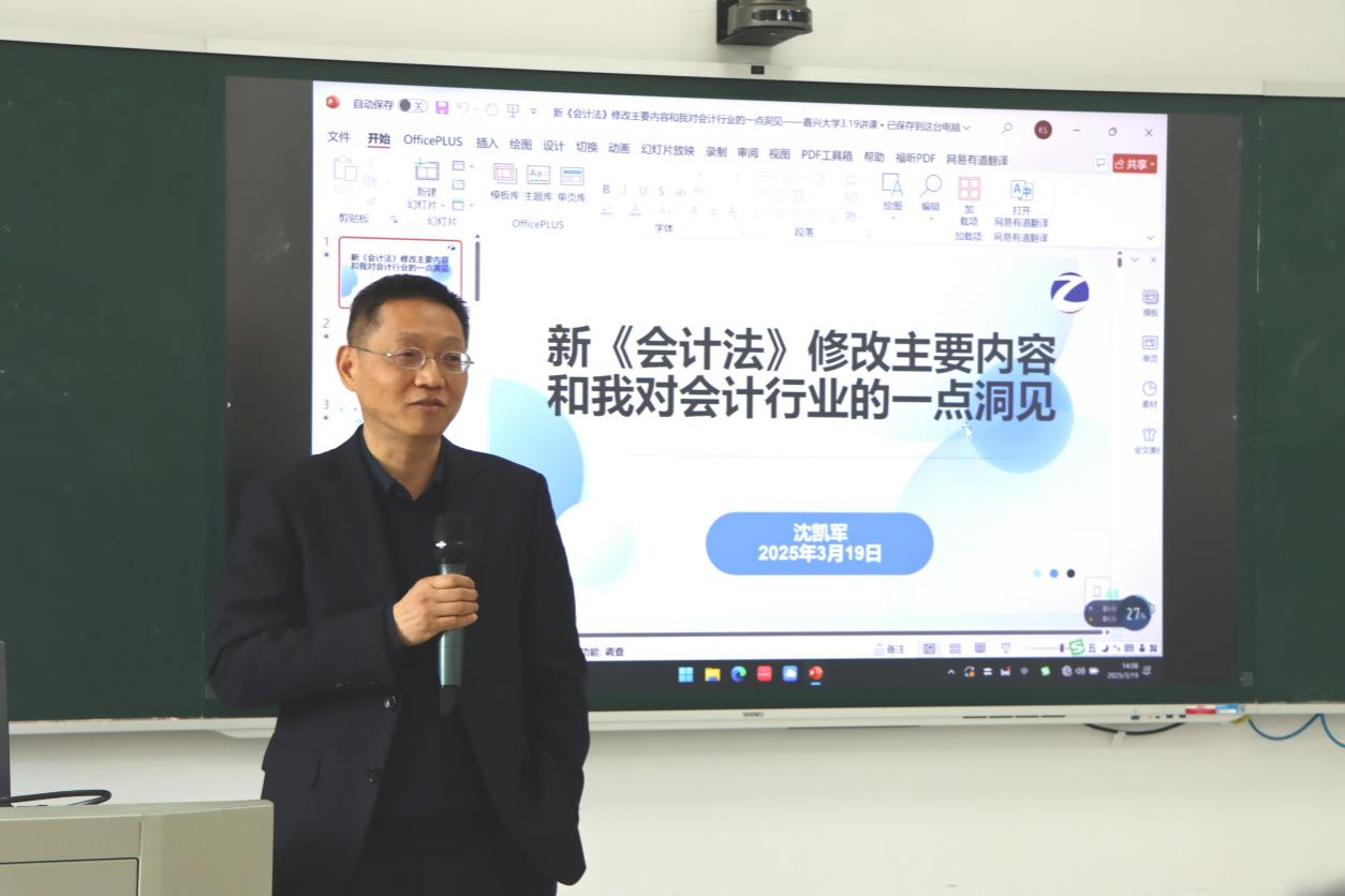 沈凯军以“新《会计法》修改主要内容和我对会计行业的一点洞见”为主题,详细解读了新《会计法》的15项修改内容,重点分析了本次修改内容对会计信息化、内部监督、违法惩处等方面的影响也结合自身多年的会计行业从业经验,从会计职业吸引力、审计费和审计聘用模式、信息化对会计行业的影响、会计教育与实务工作、DeepSeek对审计行业的影响等五个方面,分享了他对当今会计行业的一些深刻看法。鼓励研究生们积极投身注会行业,在实践中积累经验,提升专业能力。