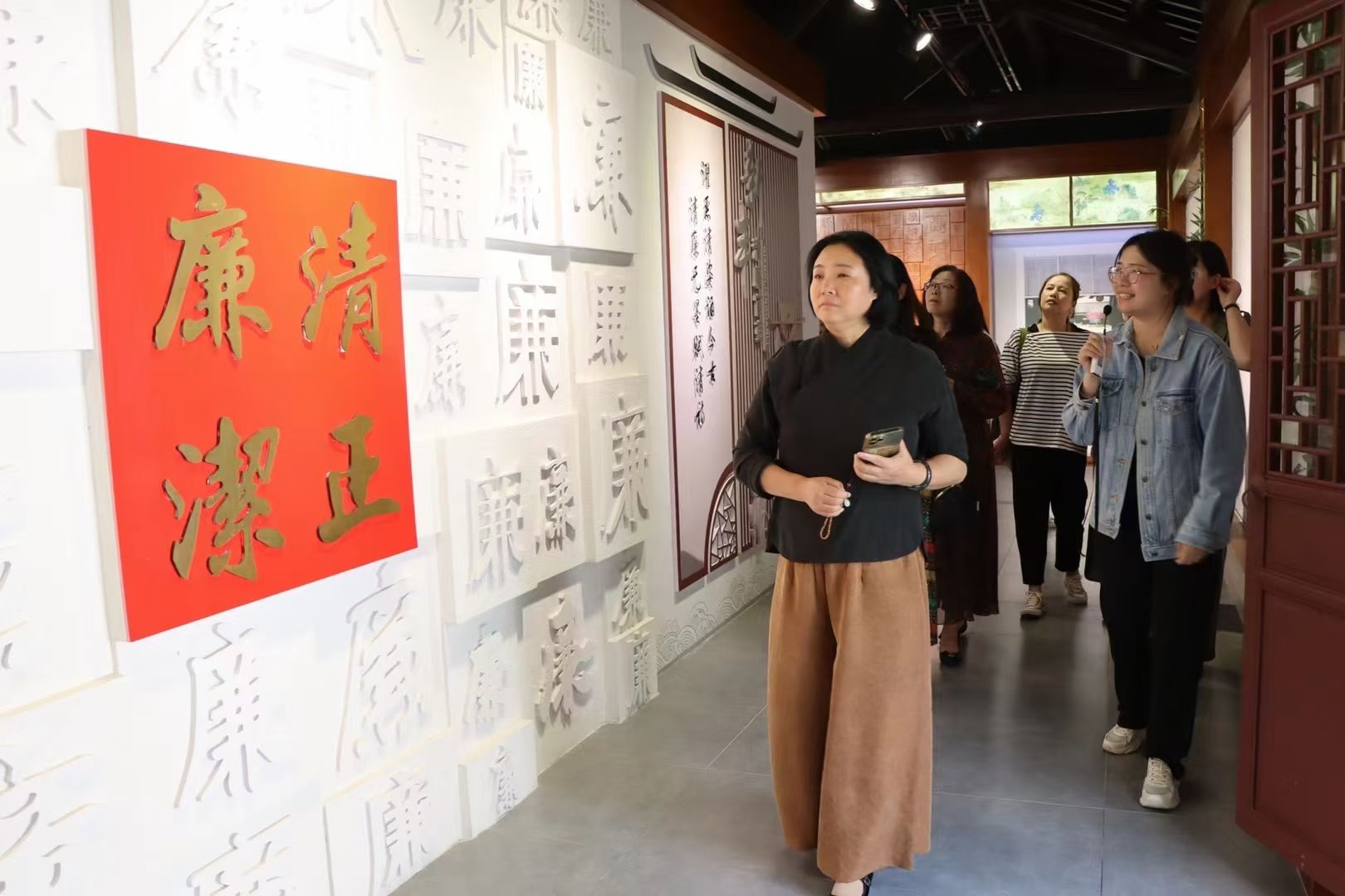 主题活动由寄廉语”“走廉路” “插廉花三部分组成。在寄廉语环节,潘煜双为与会教师开展以清廉商院 巾帼同行为主题的廉微课,鼓励与会教师尤其是新入职的教师要爱岗敬业、自立自强、廉洁从教,保持清醒头脑,严守纪律规矩,共创桃李清风清廉学院;在走廉路环节,开展树清风· 清廉家风传习之旅,前往凤桥镇竹林村高以永史料陈列馆,在讲解员的带领下了解了清廉模范高以永的事迹,学习乡贤品格,弘扬廉洁文化,体悟中华良善文化;在插廉花环节,与会教师一起开展花语廉心树廉风 手工DIY盆景活动,将印有字的小卡片插进盆栽,在享受制作乐趣的同时,也受到清廉文化的熏陶。