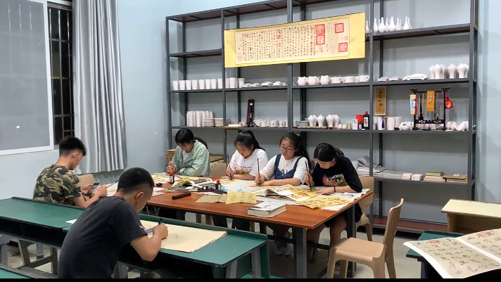 每周四晚上20:00~21:00,书法社在活动室进行书法学习,认识毛笔的类型和不同的宣纸。我国的书法艺术,博大精深,凝聚着炎黄子孙的无穷智慧,是中华民族文化遗产中的瑰宝。书法是一门艺术,是一种修身养性的良好途径。成员们从平时的练习中体会到传统书法的古典韵味,陶冶情操。