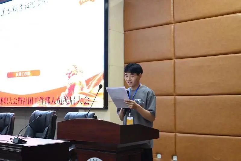 最后,上一届社联各工作部门干部代表进行述职报告。他们回顾了以前的工作,分享了在社团工作部工作的收获和感想,并表达了对下一届社团成员的祝愿。