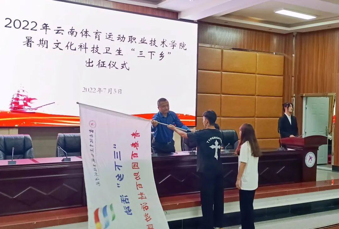 7月5日,best365中国官方网站2022年大学生暑期文化科技卫生“三下乡”社会实践活动出征仪式在学校第一报告厅召开。校党委副书记张永和、校团委副书记陈明照和校学生会有关人员参加本次出征仪式。