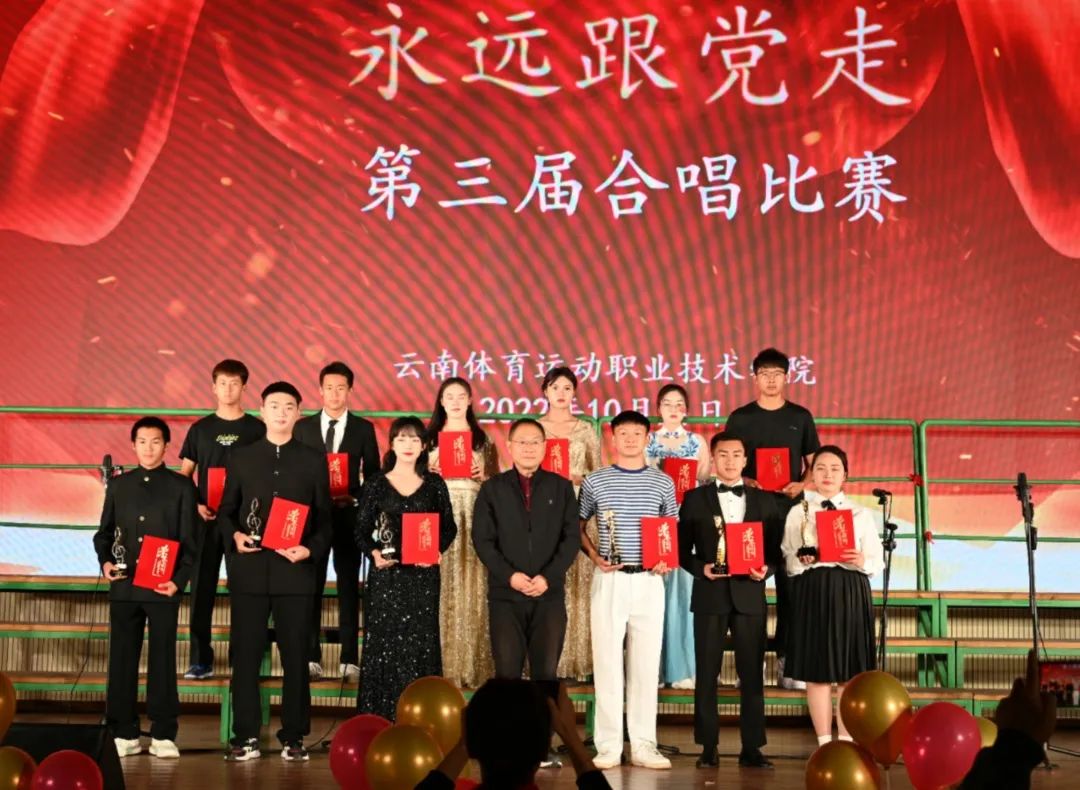 体育传媒与艺术学院三支进入决赛的队伍分别演唱了⟪没有共产党,就没有新中国⟫、⟪送别⟫、⟪强军战歌⟫。