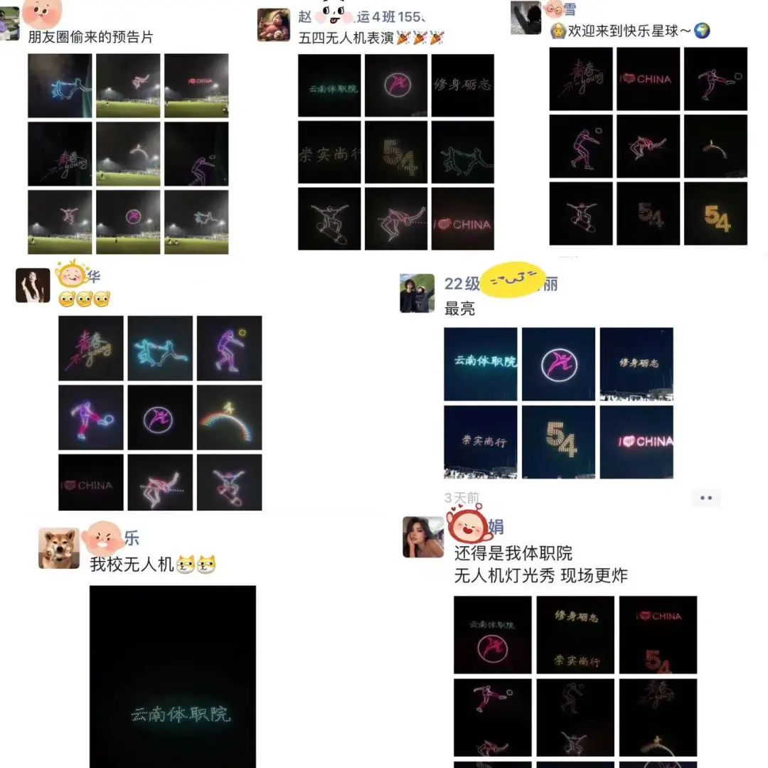 5月9日晚,体职院无人机表演在大田径场上空举行,无人机编队闪耀夜空,光影变换间,精彩接连呈现。