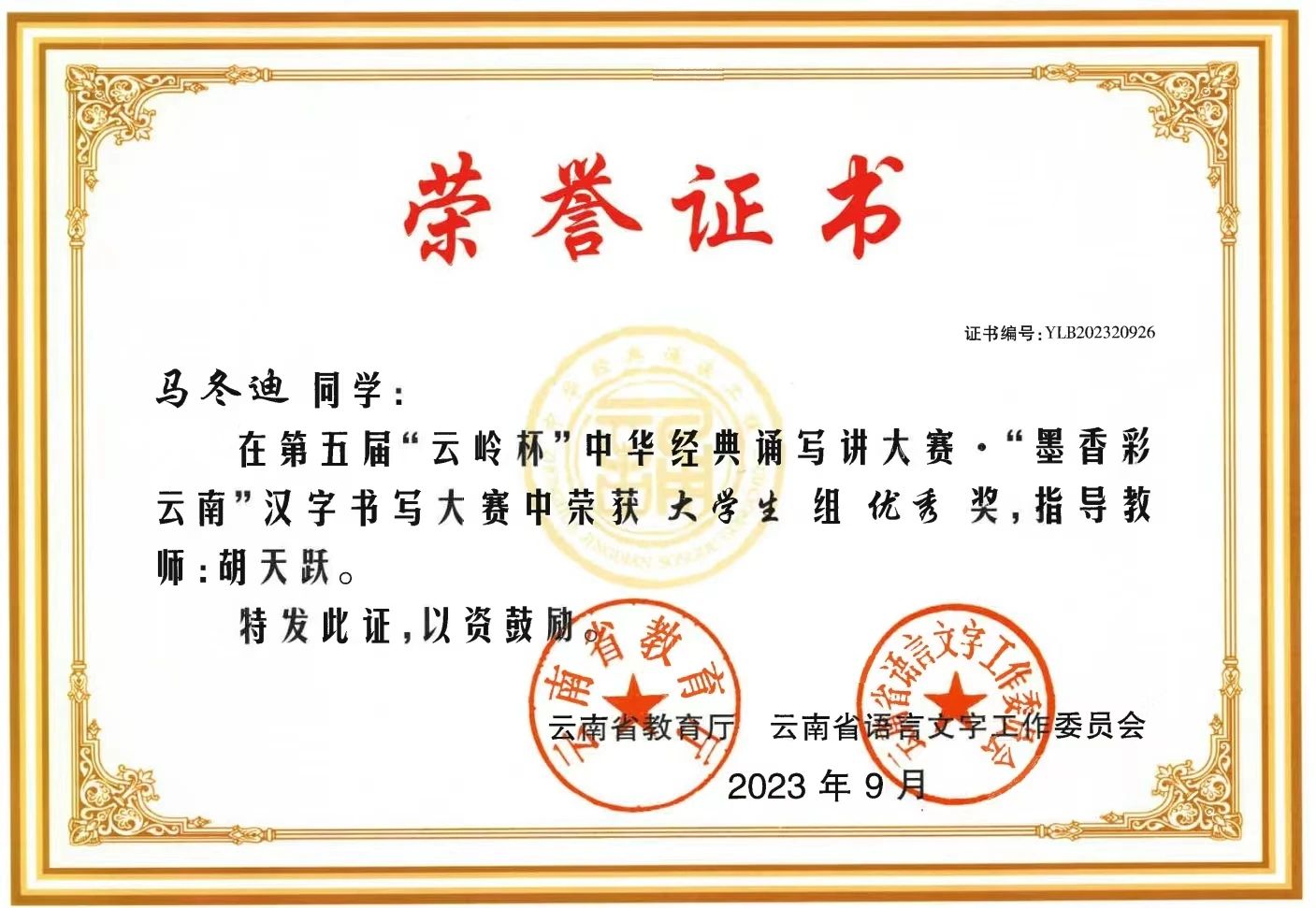由云南省教育厅、云南省语言文字工作委员会所举办的云南省第五届“云岭杯”中华经典诵写讲大赛于近日公布赛事结果,best365四件学生作品获得“墨香彩云南”汉字书写大赛奖项。