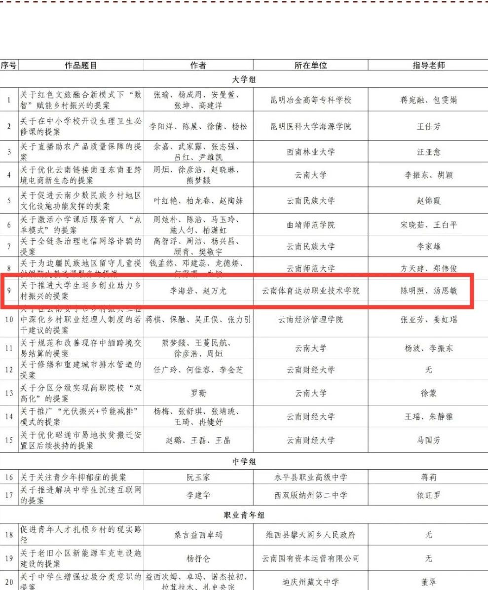 2023年云南省青少年模拟政协提案征集活动“优秀模拟政协提案作品”