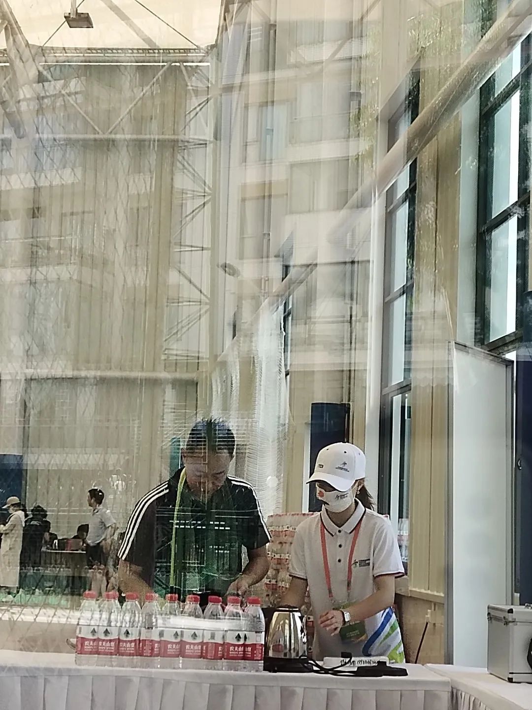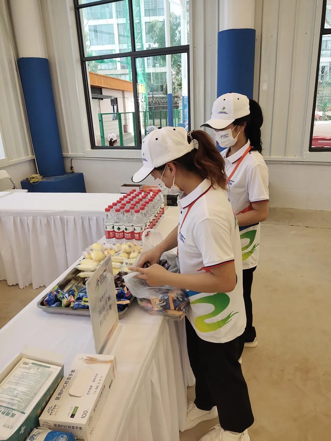 志愿者们在门口以及相应的位置都设置了站点,为各单位的广大职工们进行指引,还设置了相应 的补给站、休息区,每个站点都有志愿者在岗 。为了方便他们换比赛服或者休闲服,还在每个球场的旁边都搭建了更衣室 。