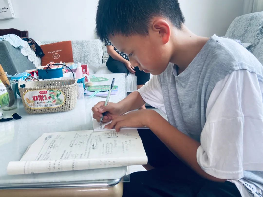 陈阿勇在家中写作业