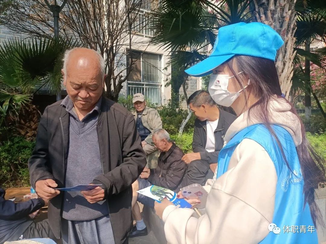 在社区工作人员对志愿者的现场统一培训指导下,志愿者们共分为3个小组开展活动。分别是宣传防范电信诈骗常识,发放宣传册;保护“母亲河、人人有责”环境卫生清理;协助社区进行65岁以上老年免费体检等活动;在静海园小区、盘龙江边银杏公园、金海新区一期、金海新区二期志愿者们的身影成为了社区里的一道靓丽的风景。