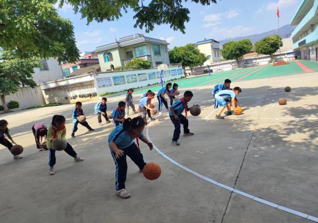 迎接完后,会泽县11位同学们,跟随校长前往自己所支教的地方。刚来到新工地小学,才进到学校时是他们的课间休息时间,球场上的篮球场几乎都是同学们在打球,在这里,让我看到同学们对篮球的热爱。