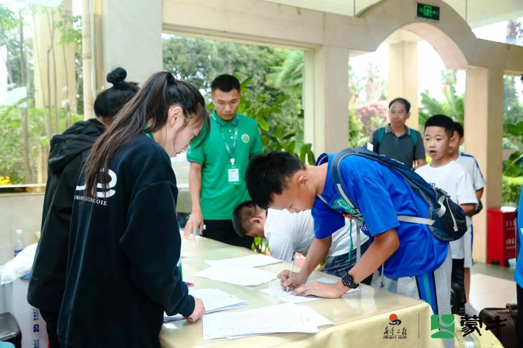 “希望工程·蒙牛少年足球夏令营”昆明营共有来自全国16个省、市、自治区的164名中小学球员参加, 7月11日上午志愿者们便前往长水机场、昆明火车站、昆明南站接待陆续到达的小球员们。