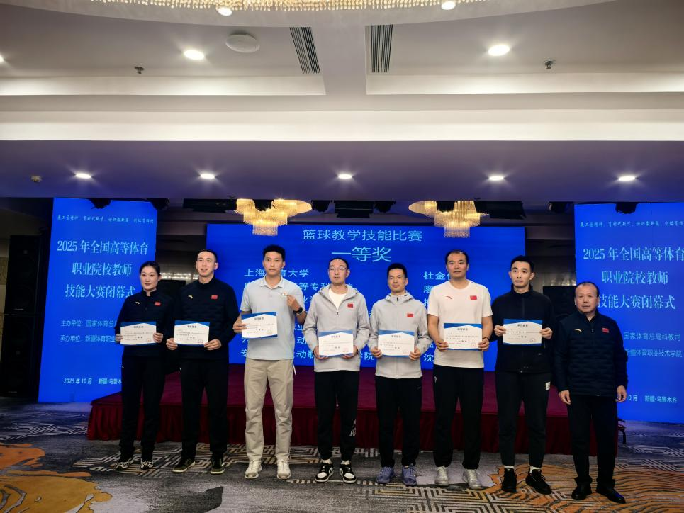 2025年10月14日至17日,全国高等体育职业院校教师技能大赛在新疆体育职业技术学院隆重举行。竞技体育学院高度重视此次赛事,精心选派篮球专项教师温浩参加比赛。在全国20所体育职业院校、35支代表队、156名参赛选手的激烈角逐中,我院篮球教师温浩凭借娴熟的技术动作与稳定的赛场发挥,荣获篮球技能大赛一等奖,充分展现了best365教师队伍的过硬实力与育人风采。