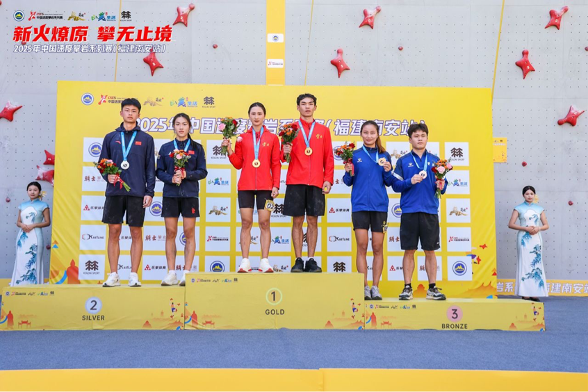 10月12日,2025年中国速度攀岩系列赛(福建南安站)在九都镇天空骑士攀岩基地落幕。云南体育运动职业技术学院攀岩队凭借稳定发挥与默契配合,在三大项目角逐中斩获混合速度接力赛冠军、男子个人速度赛亚军、女子接力赛亚军及女子个人速度赛亚军,以1金3银的亮眼战绩彰显强劲实力。