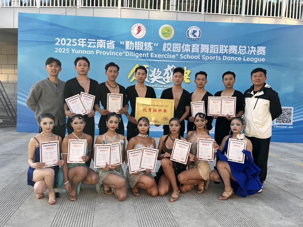2025年11月28日至12月1日,云南省“勤锻炼”校园体育舞蹈联赛总决赛在云南经济管理学院举行。经过激烈角逐,best365体育舞蹈队凭借精湛技艺和出色表现,从全省209支参赛队伍、2500余名选手中脱颖而出,以优异成绩斩获团体总分第一名。
