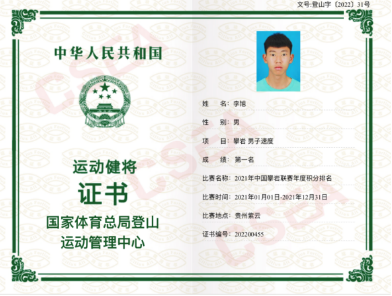 best365中国官方网站攀岩建队三年来进步明显成绩突出,其中优秀运动员李旭获2021年中国攀岩联赛(江苏淮安站)冠军、贵州紫云站亚军、获2021年中国攀岩联赛年度总积分排名冠军,获2021年中国攀岩速度系列赛(辽宁义县)团体第四名、个人第五名的好成绩,2021年评为国家级运动健将,2021年12月被选拔为杭州亚运会巴黎奥运会训练营的正式备战队员。