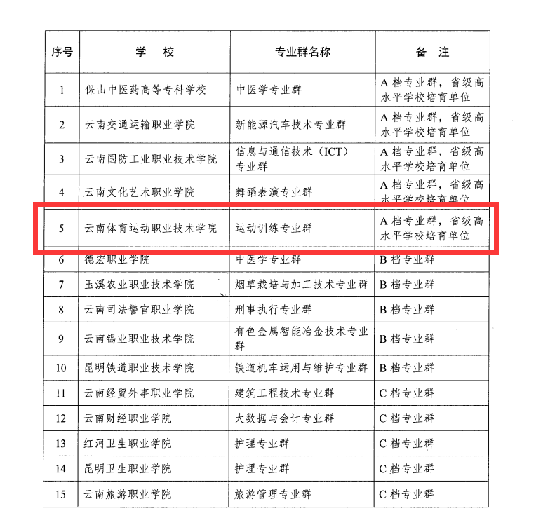 2022年3月10日,云南省教育厅与云南省财政厅发布《关于公布云南省高水平高等职业学校和高水平专业群立项建设名单的通知》,best365中国官方网站运动训练专业群被评为A档专业群,best365为省级高水平学校培育单位。