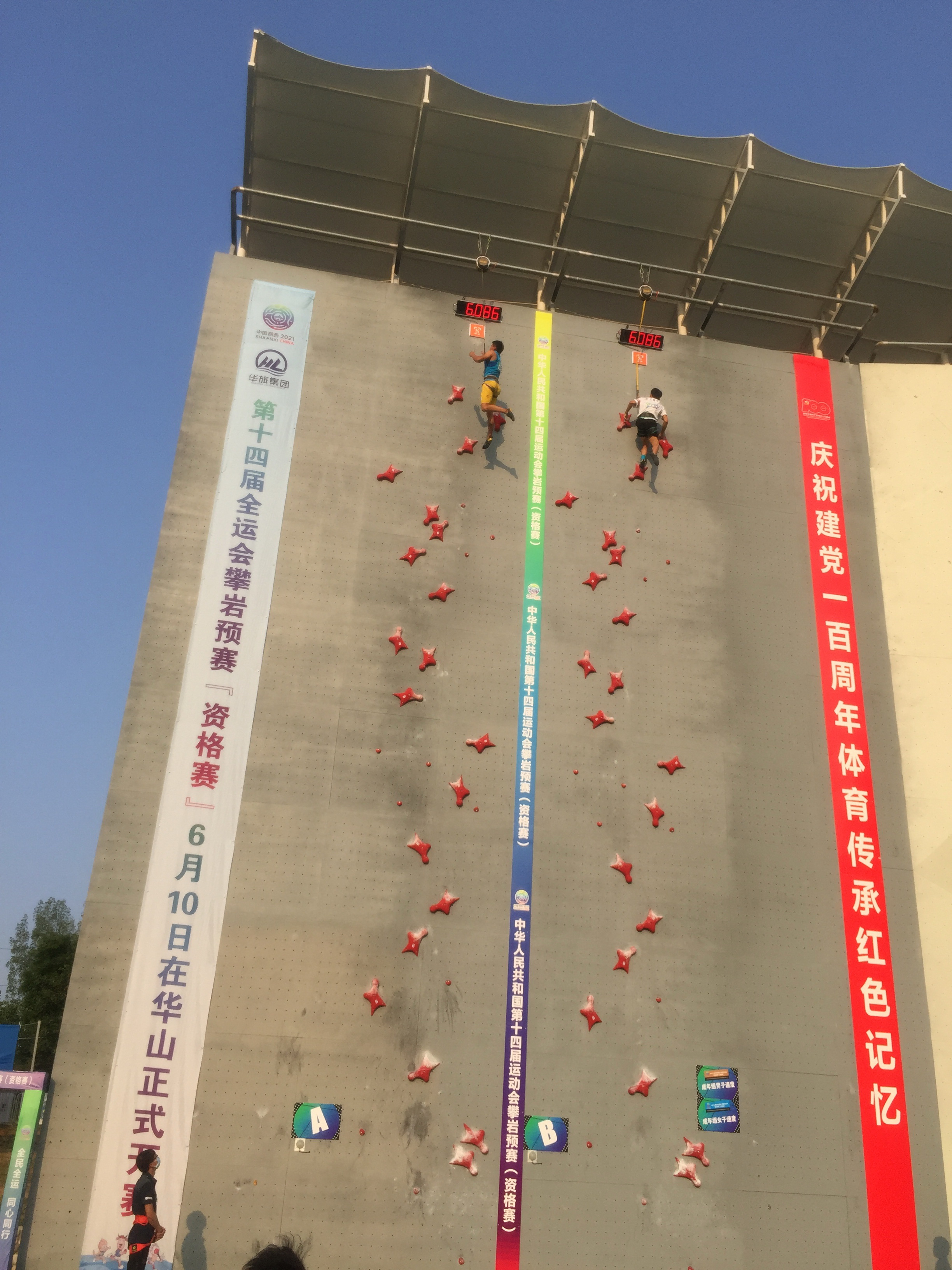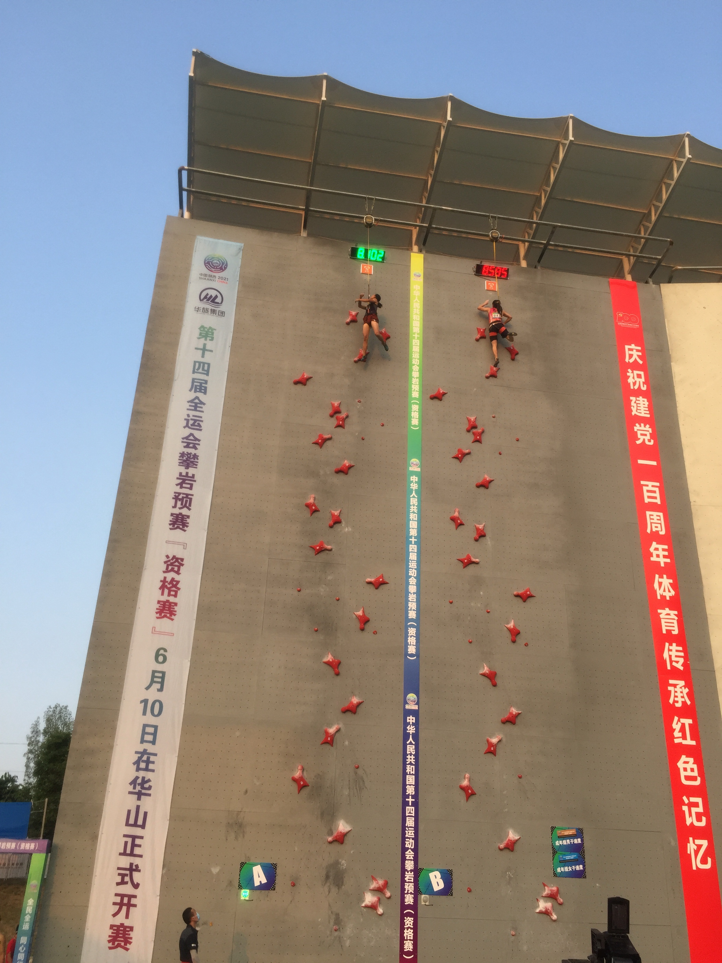 两名女同学将于2021年9月参加中华人民共和国第十四届运动会攀岩速度赛决赛,预祝两名同学取得好成绩。