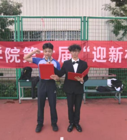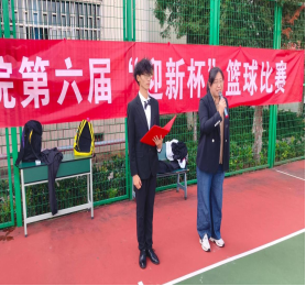 随后,学院院长杨潇老师宣布本届“迎新杯”篮球赛开幕;学院党总支书记赵功景老师为比赛开球,本届赛事全面启动。