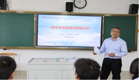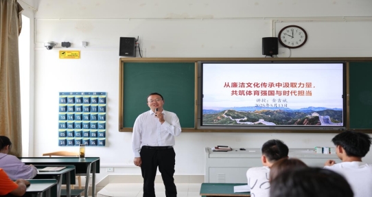 图为纪委书记、监察专员金吉斌为学生讲思政课