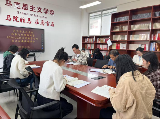 2025年3月25日,马克思主义学院形势与政策课教研室在云帆楼314室组织召开本学期第二次集体备课会。会议由教研室负责人幸达主持,马克思主义学院副院长丁康及全体专兼职教师参加会议。