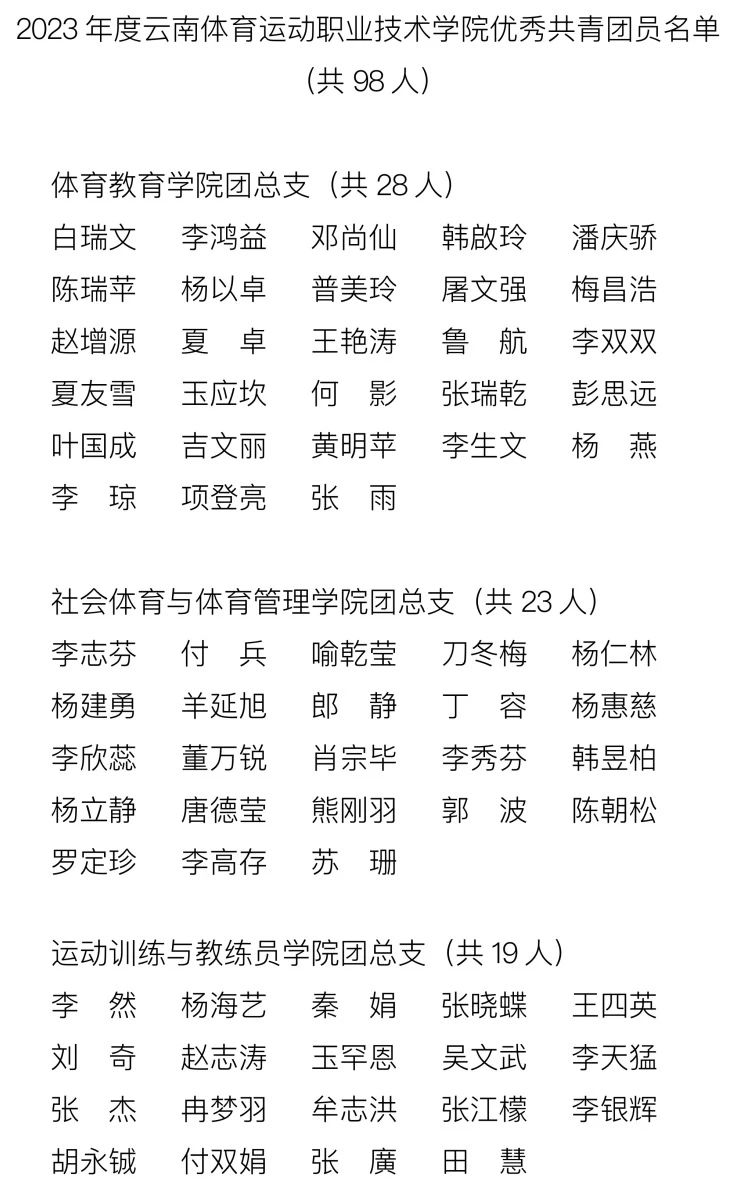 2023年度优秀共青团员名单