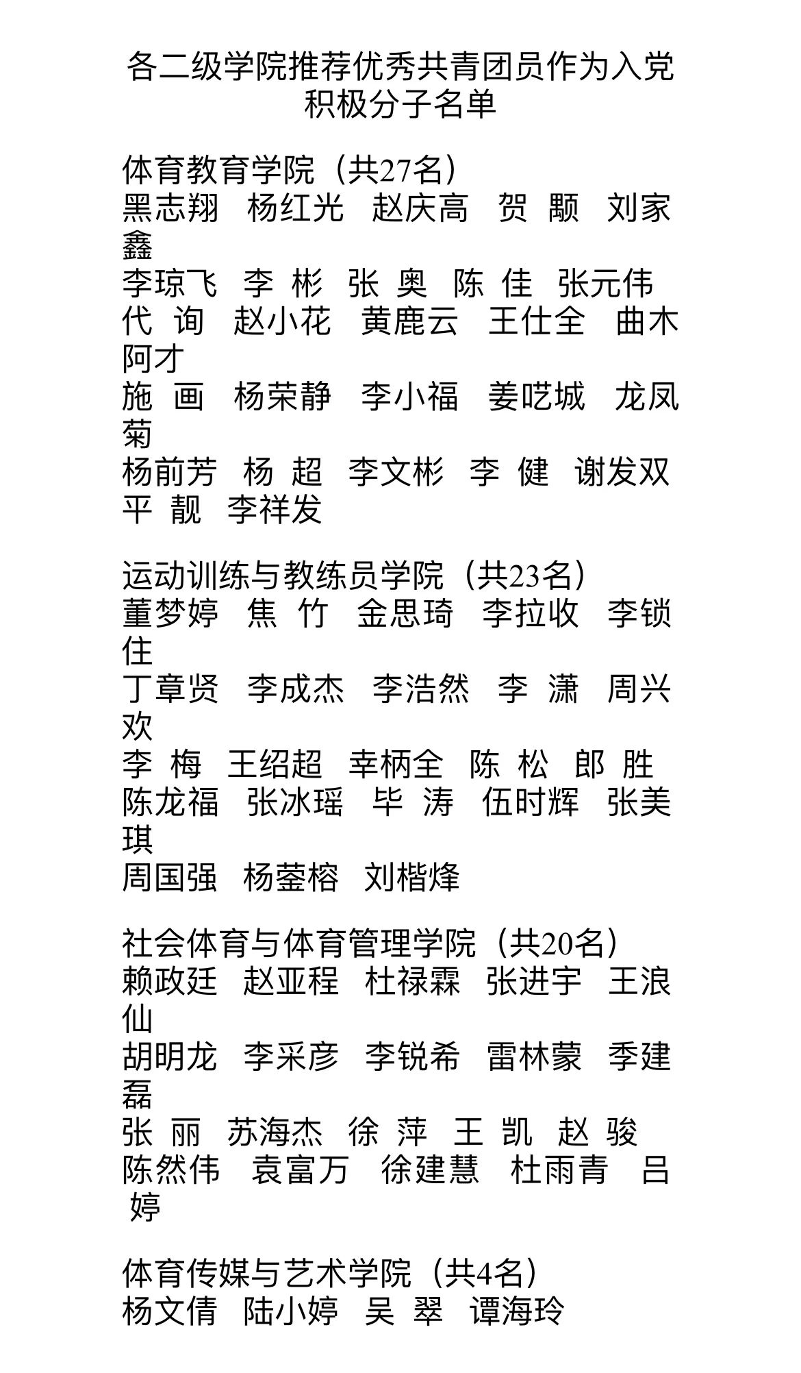 根据《关于开展best365中国官方网站2024年共青团推荐优秀团员作为入党积极分子工作的通知》相关规定,经各团支部民主推荐,各二级学院团总支严格把关,共青团best365中国官方网站委员会认真审查,拟推荐以下74名共青团员作为入党积极分子,现将人选名单予以公示。公示期共5个工作日,2024年4月7日一4月11日,公示期内如有异议,请向校团委反映。