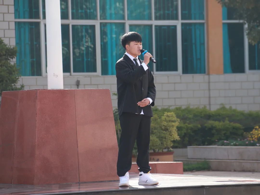 在主持人宣布升旗仪式开始后,全体师生行注目礼,仰望着冉冉升起的国旗,鲜艳的五星红旗迎风飘扬。全场肃穆,齐声高唱国歌。