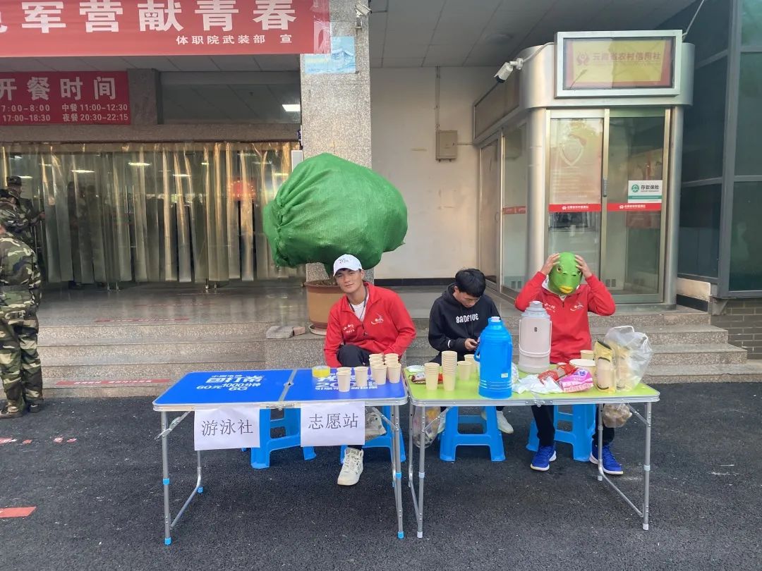 军训送温暖,我们不缺席。在送水的同时,同学们们为他们高强度的训练精神点赞,希望他们能再接再厉,磨炼吃苦耐劳的意志。游泳社的同学们们也分享了自己的军训心得并鼓励新生在训练中发扬肯吃苦,不怕累的精神,要严格按照教官要求完成训练。