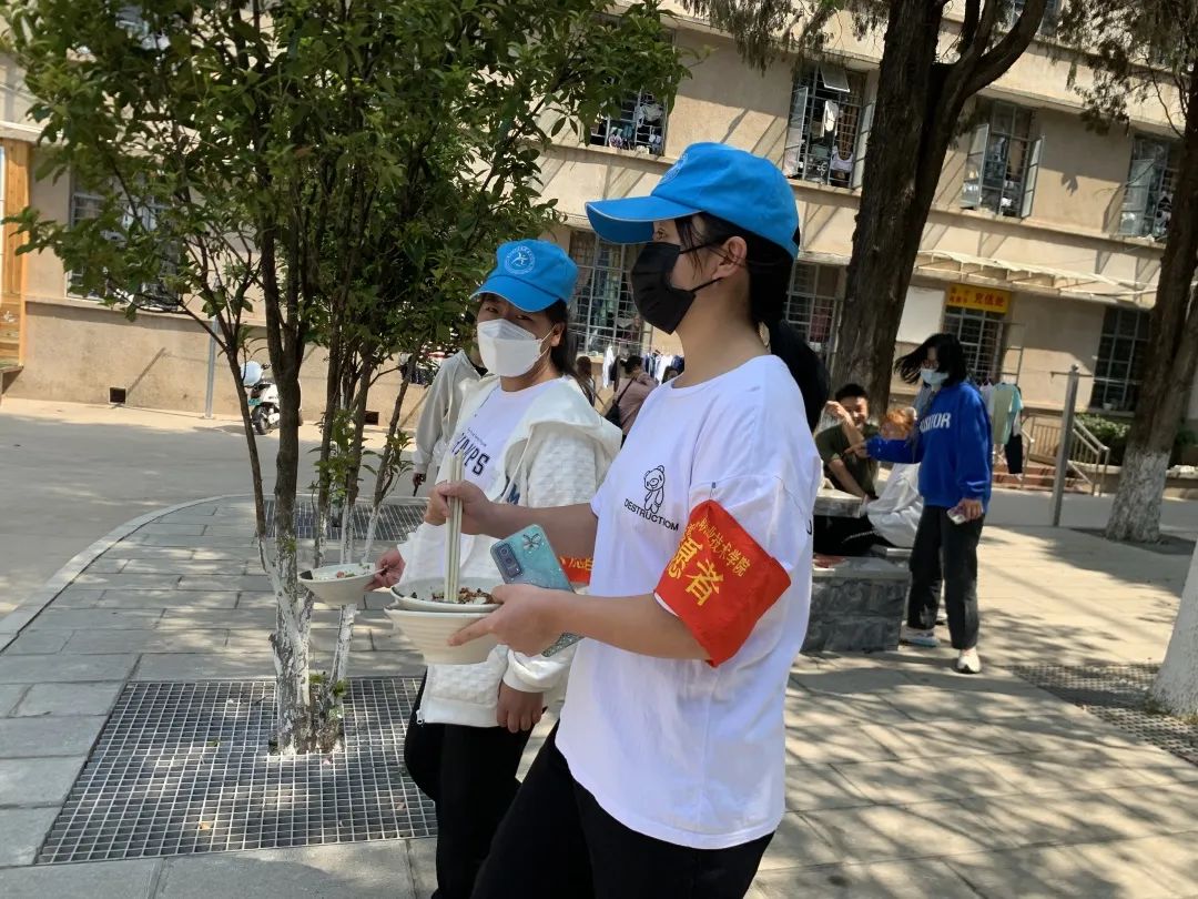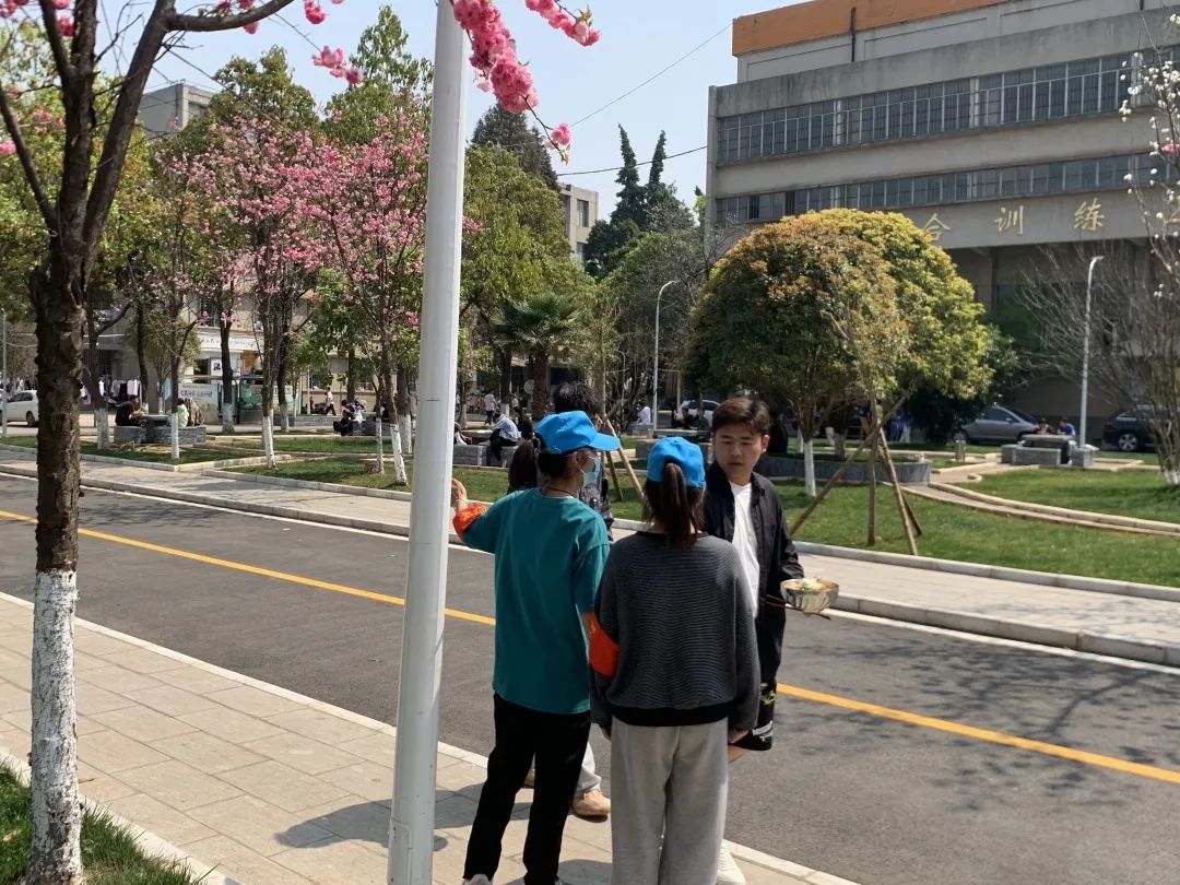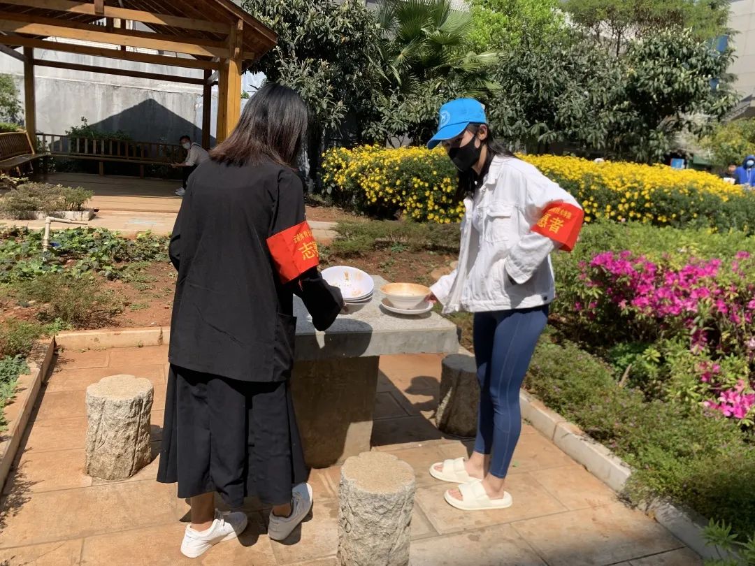 疫情期间,志愿们还劝导同学们在食堂选餐时,要减少交流,保持距离;选座时,不扎堆,不对面,分散就坐;就餐时,专心吃,不讲话,快速就餐;结束后,戴口罩,净桌面,迅速离开。