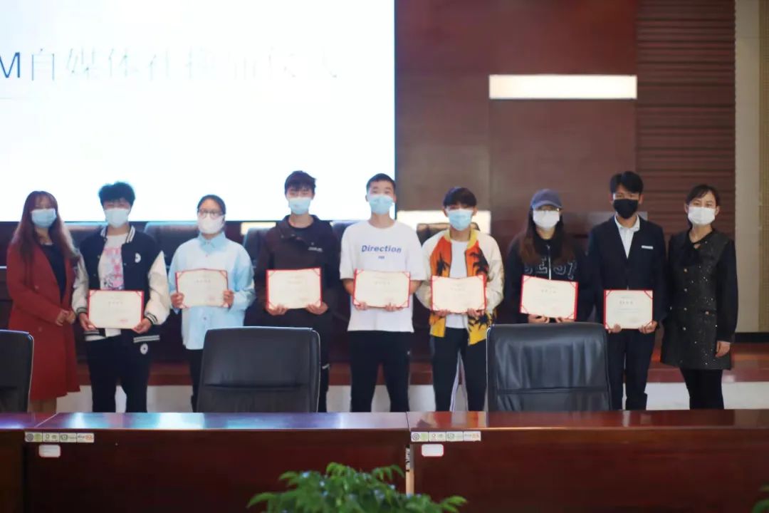 自媒体社社长张剑同学作年度述职报告,他表示:“首先,感谢学校团委对自媒体社的关心和指导。在过去的一年里,我们对社团进行了全新整改,设立了技术部、编辑部和策划部三个部门,更有序地组织大家进行作品的创作。”