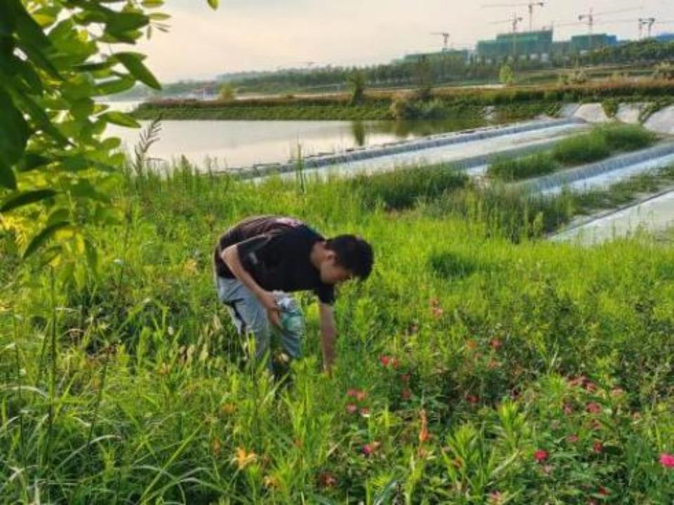 大沙河是海河流域卫河的一条支流,河道全长115.5公里,焦作境内长74公里,一直属焦作泄洪河道。活动伊始,我们在大沙河旁的草坪帮助工作人员除草,并捡拾塑料瓶等垃圾。在完成垃圾捡拾工作后,我们在大沙河的黄沙滩和白沙滩分别进行了消杀工作,为驻足的行人提供更加干净安全的休息环境。