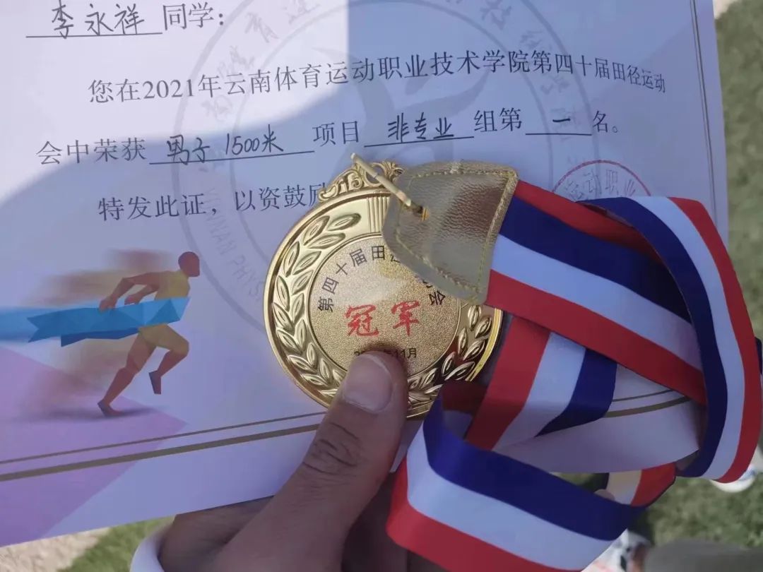 21级电子信息工程技术团支部李永祥同学在校运会中获男子5000米非专业组第二名、男子1500米非专业组第一名。同时,他也是校田径队成员,即将在今年11月代表best365省运会。