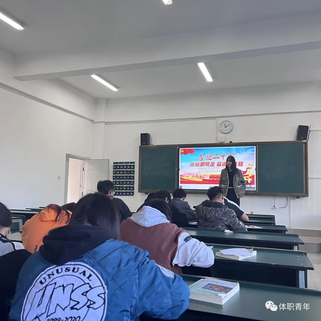 运教学院团总支书记常娜领学了党的二十大精神,号召运教学院团学干部认真学习贯彻党的二十大精神,紧跟党奋进新征程,用实实在在的努力和行动做行稳致远的不懈奋斗者,做争创一流的坚定践行者。