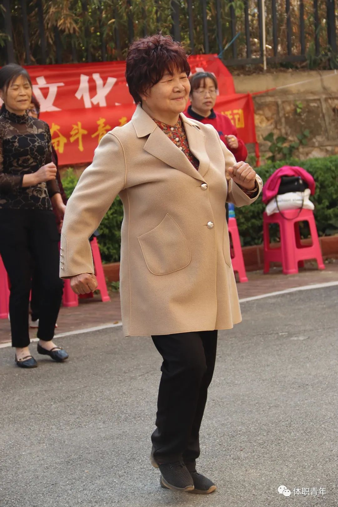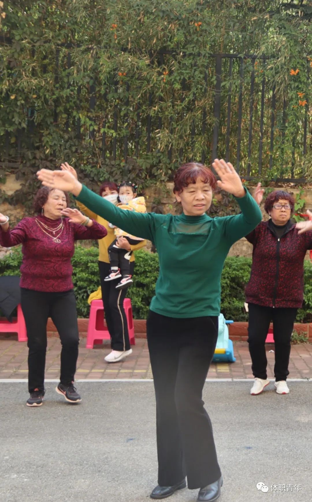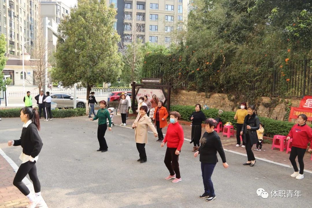 2023年3月15日,体职院团委组织啦啦操校队的同学来到昆明市西山区星海社区,为社区的中老年人带来了一场健身操公益课。