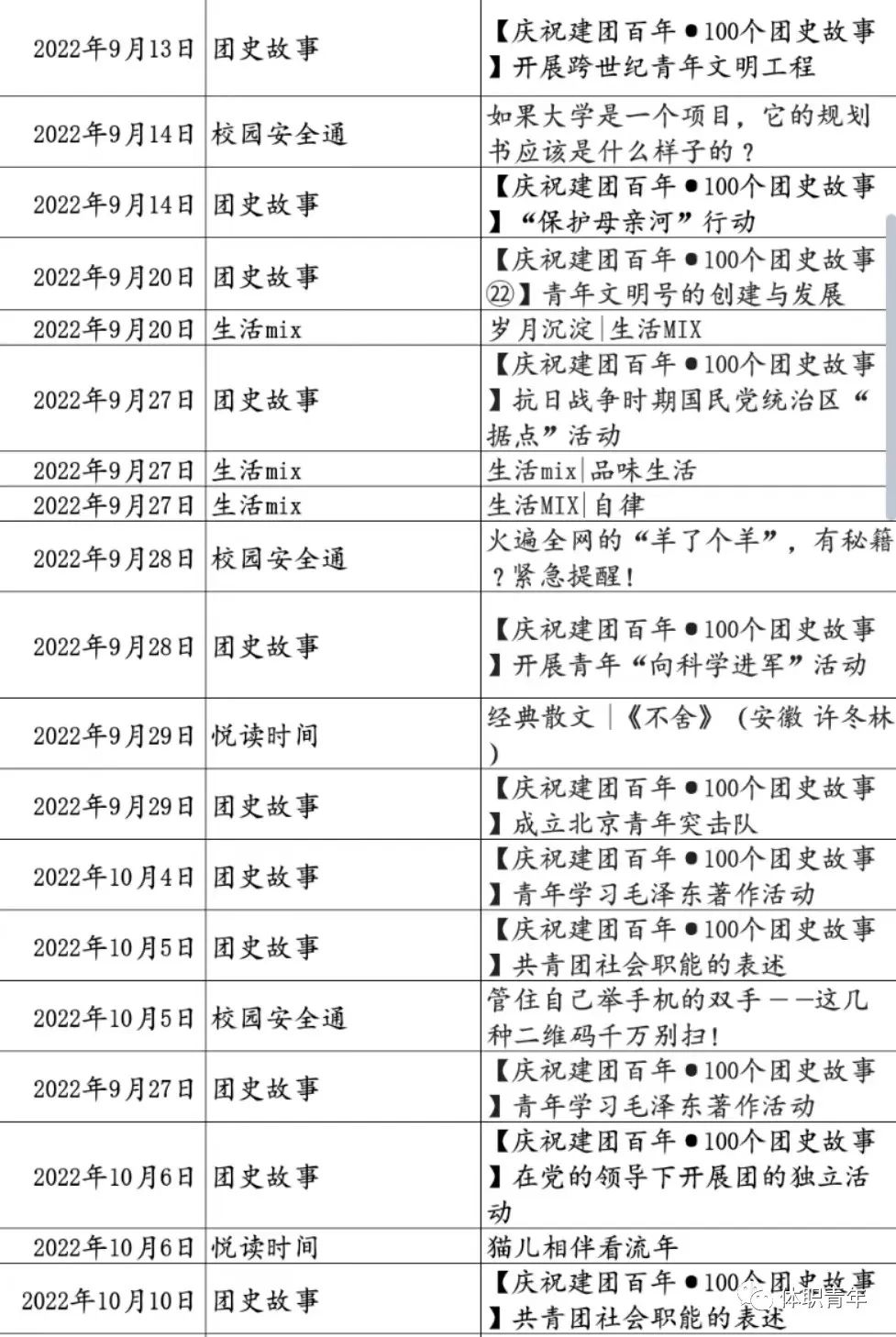 充分发挥微信公众号“体职青年”的引领作用。结合党史学习教育和青年关心关注的热点,对校团委所属新媒体平台“体职青年”进行了专栏新设,持续宣贯党的二十相关内容。“体职青年”累计发文460篇,2022年阅读总数达17万。在2022年度校园文艺晚会中,校团委首次采用直播形式对该晚会进行在线直播,在线观看总人数1.7万,喝彩次数达17.7万。