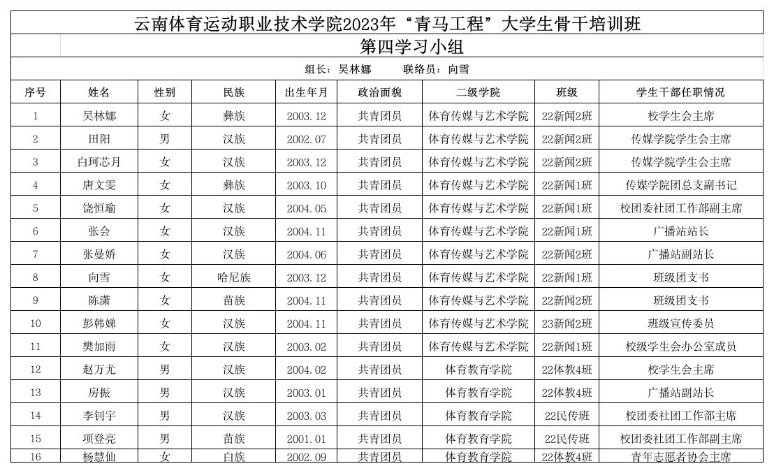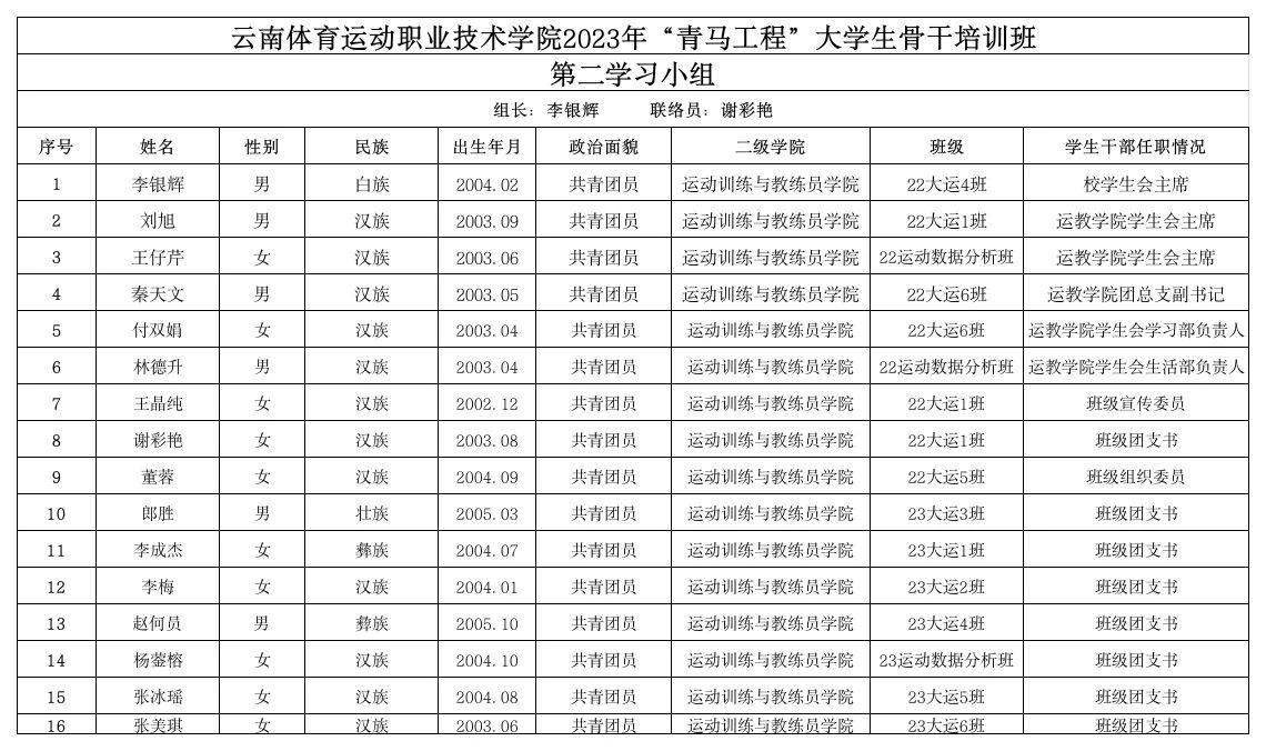 根据《best365中国官方网站青年马克思主义者培养工程实施方案》,结合学校实际,目前已完成对2023年best365中国官方网站“青马工程”大学生骨干班学员的选拔工作,现将本期学员名单公示如下。