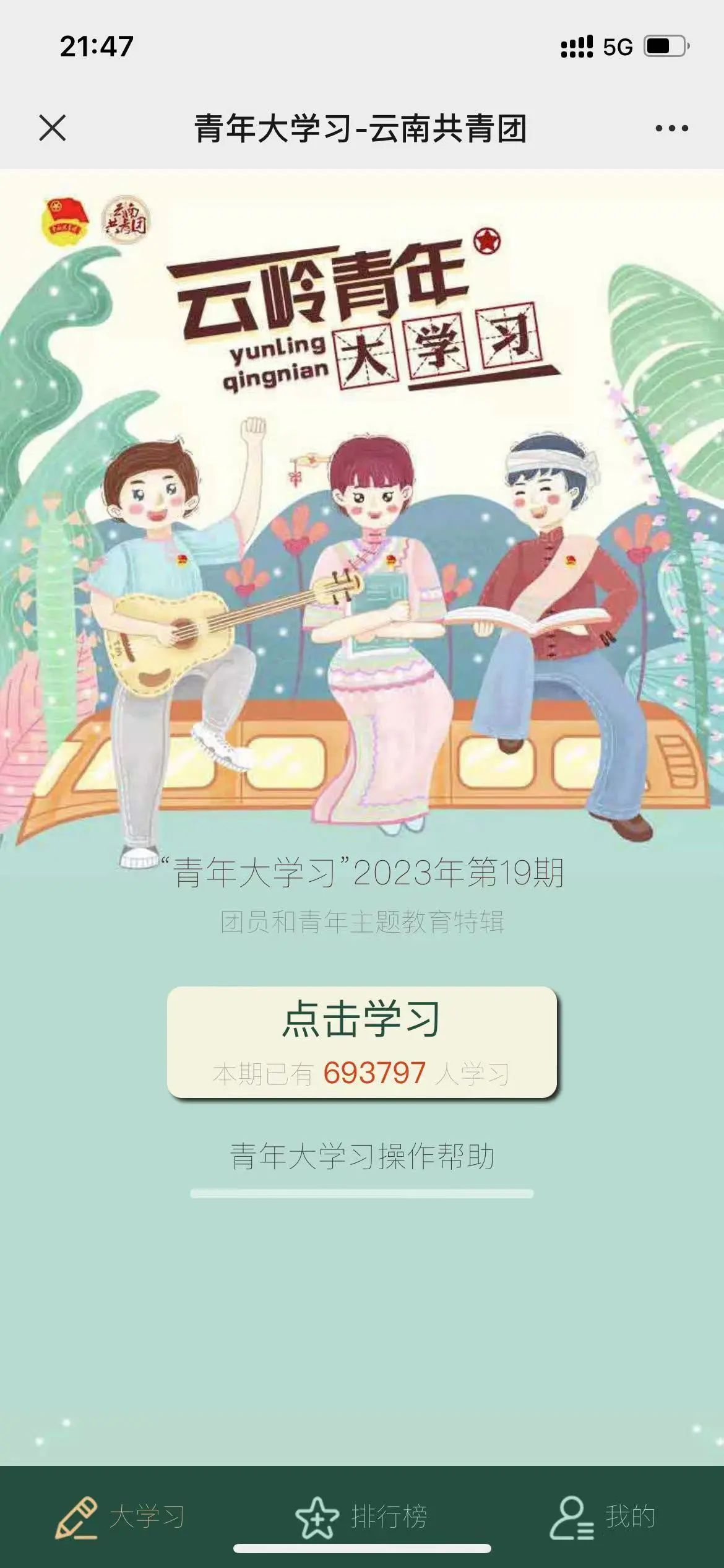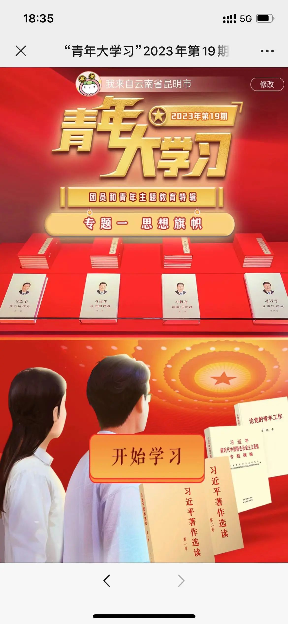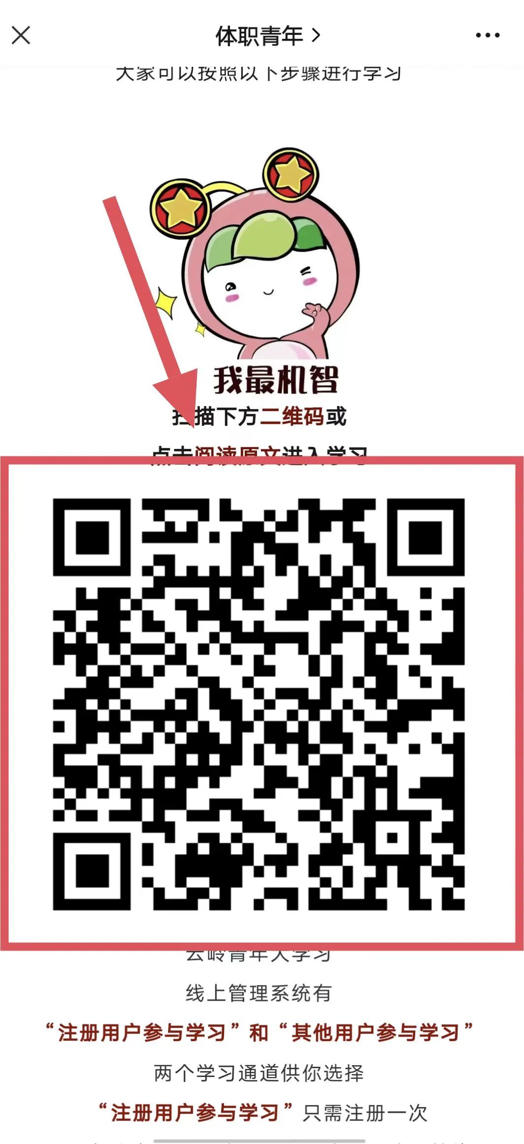 打开青年大学习公众号文章,扫描文中二维码或点击文末“阅读原文”,耐心等待3秒后会自动跳转至“云岭青年大学习”线上管理系统进行学习。