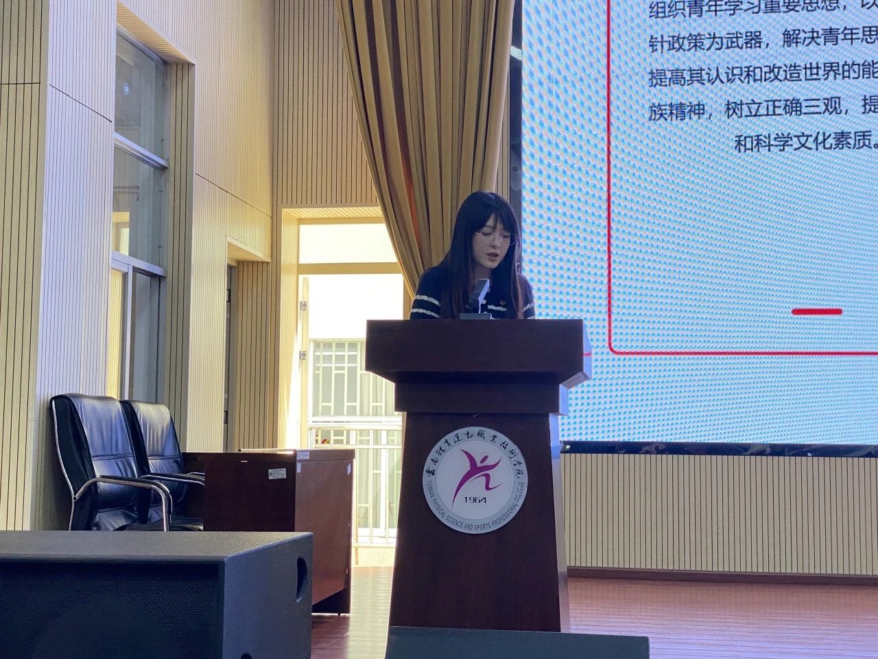 校团委综合科科长汤思敏老师首先作为第一议题传达《学习习近平给谢伊特小学戍边支教西部计划志愿者服务队队员的回信精神》再学习、再要求,按共青团中央印发通知要求落实,接着带领与会人员学习《中国共产主义青年团纪律处分工作规则(试行)》。