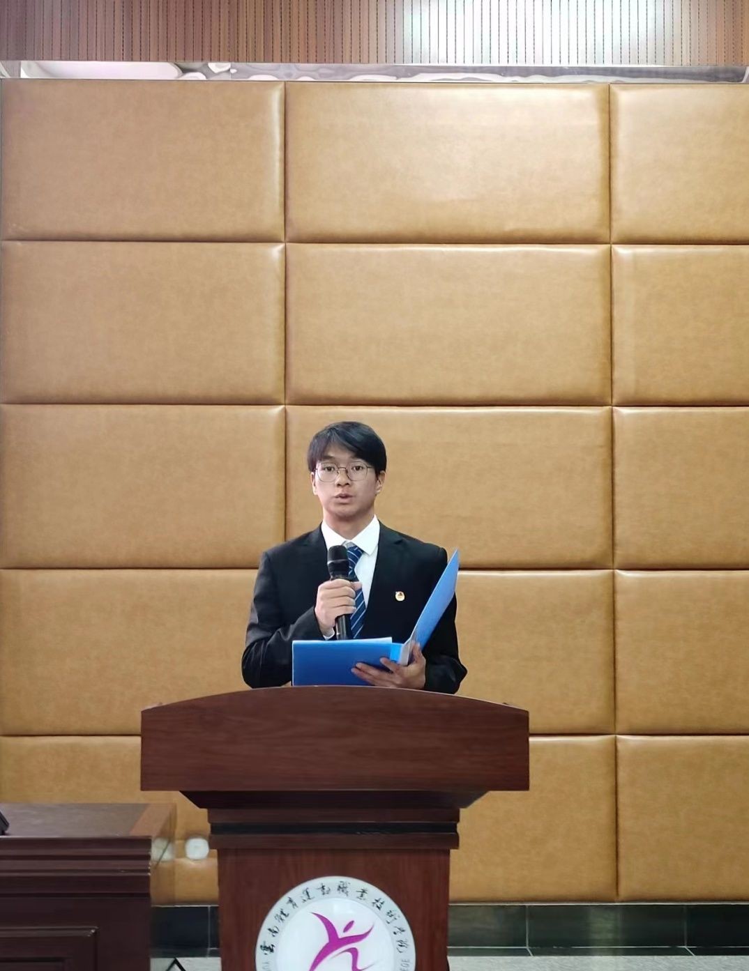 首先,社管学院第十一届学生会主席团成员孔令桥做工作报告。由于他本人外出支教进行了视频述职报告,报告中充分体现出对新一届主席团和各部门部长的工作期待。他希望下一届学弟学妹们要怀揣踏踏实实的态度去工作,为老师、同学服务。继续努力,把学生会建设的更好!