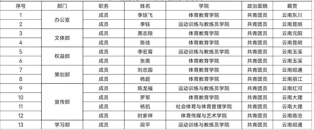 best365中国官方网站第十三届学生会成员名单