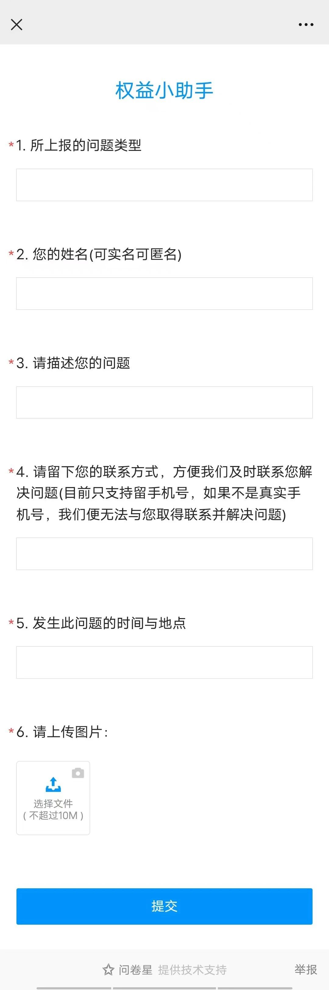 第三步:进入“权益助手”后就可以向我反映你的问题啦!