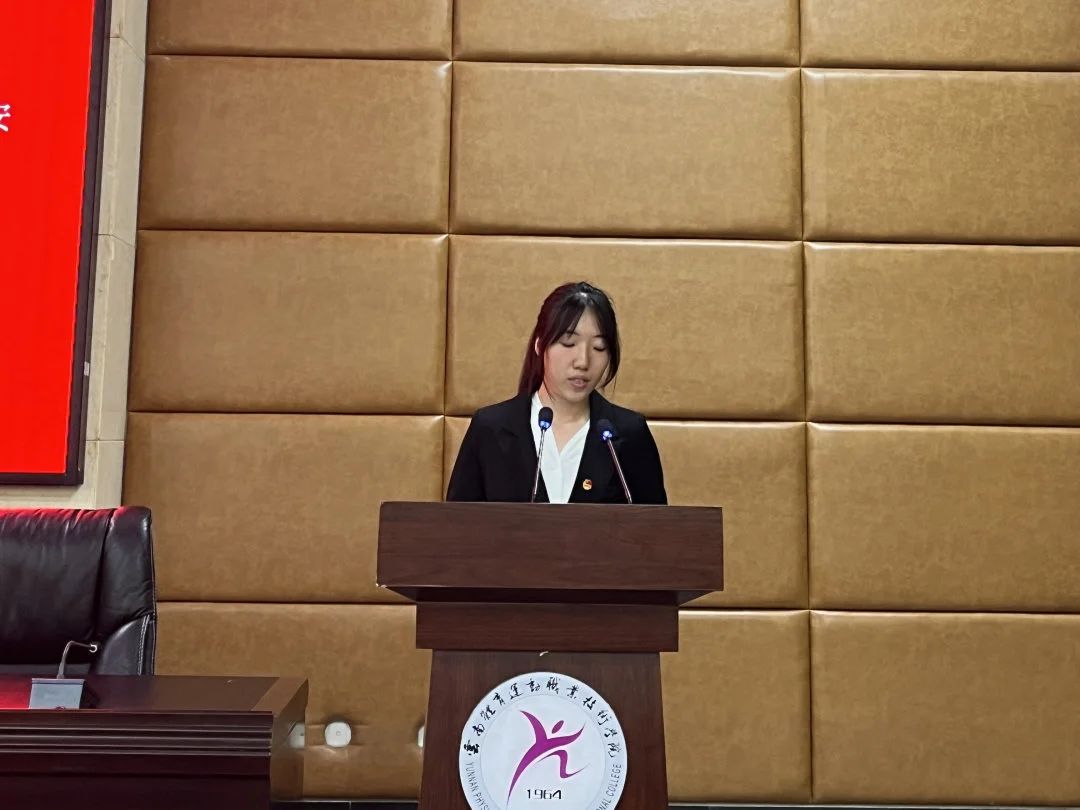 校学生会主席团成员潘秋安带领参会成员学习了党的二十届三中全会精神,强调体职院学生应深入学习贯彻党的二十届三中全会精神,理解中国式现代化的内涵与路径,明确体育事业在其中的重要作用。呼吁大家要以提升专业素养为己任,坚持党的领导,积极参与社会实践,培养创新与实践能力,同时青年学子要以坚定的信念和昂扬的斗志,为实现中华民族伟大复兴的中国梦贡献青春力量,展现新时代青年的责任与担当。