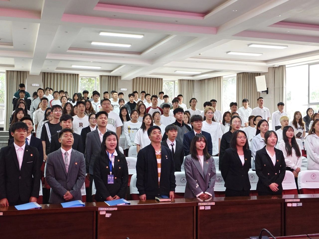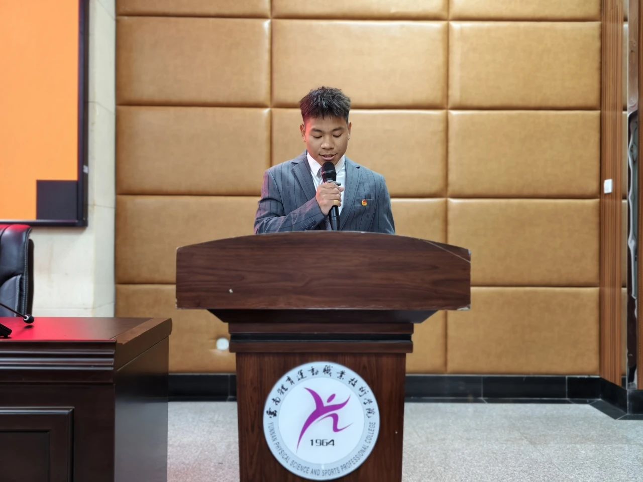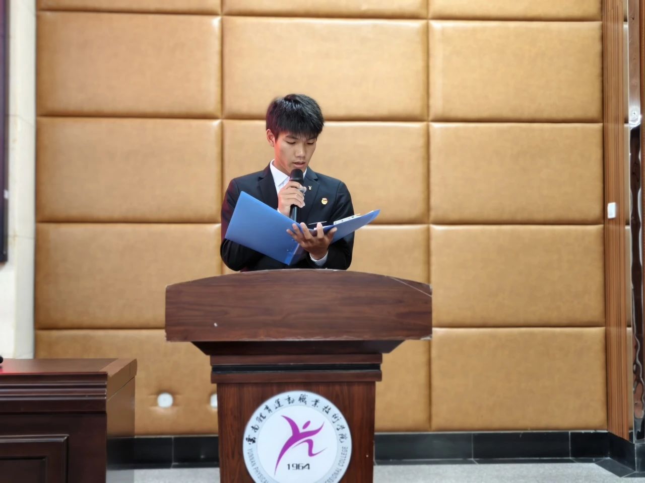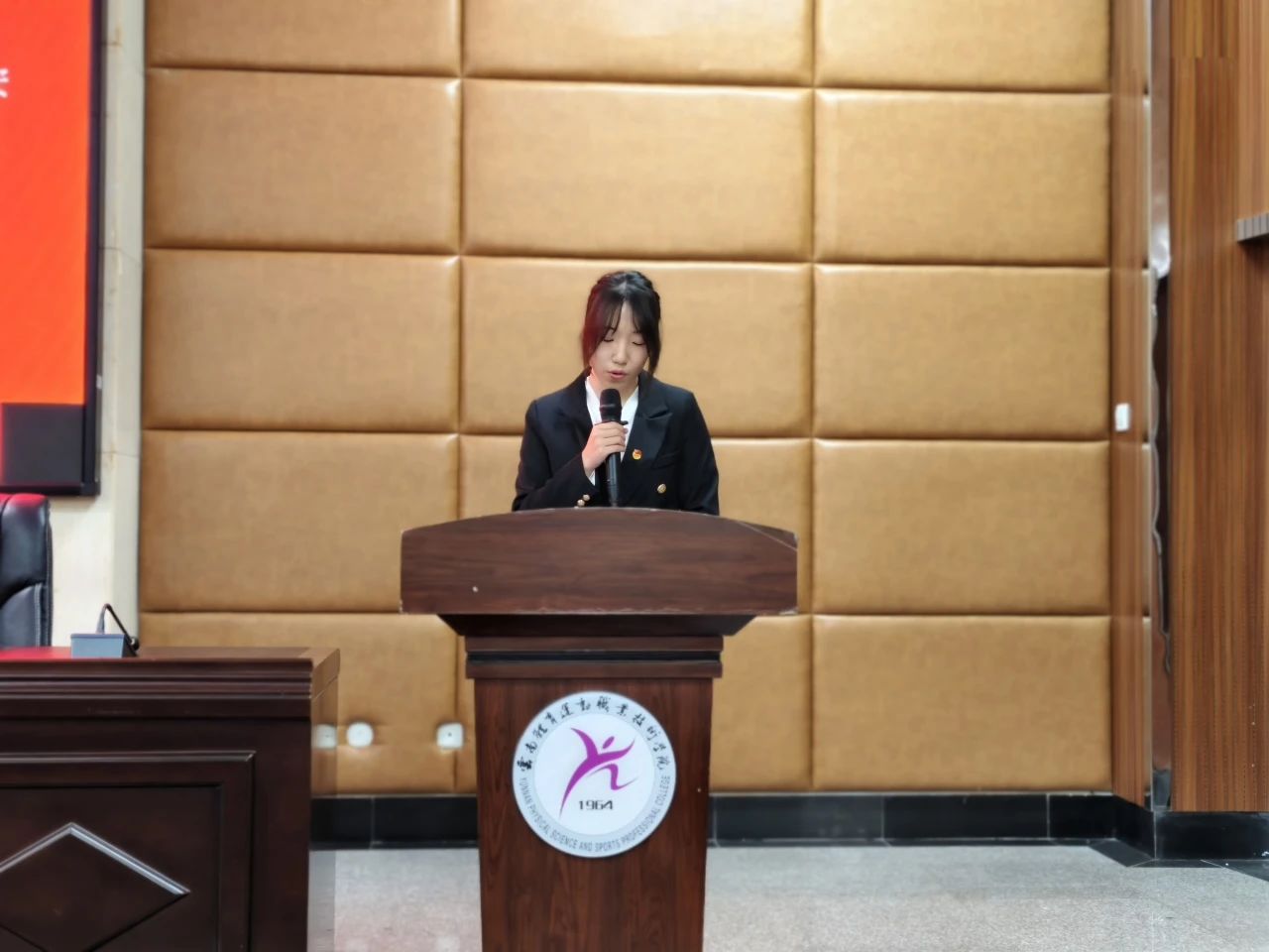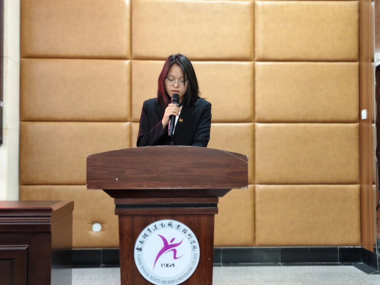 校学生会执行主席黑志翔发言,指出学生会作为连接学校与学生的纽带,本应充满正能量,但当下存在功利主义、形式主义等不良风气。他便引用张富清、张桂梅事迹强调坚守正道的意义,呼吁成员树立正确价值观,从自身做起,为此并提出五点倡议,期望共建积极向上的学生会。