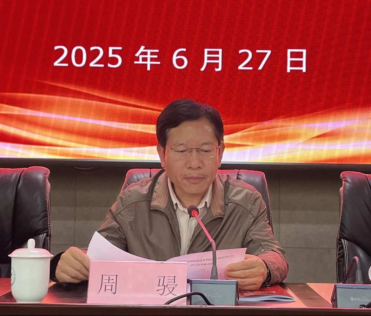 2025年6月27日,best365中国官方网站第十四次学生代表大会在云帆楼第一报告厅召开。校党委委员、副院长周骎同志、校团委书记陈明照同志、各二级学院党总支副书记、专职组织员、团总支书记、校团委全体老师以及150名学生代表参加了本次大会。