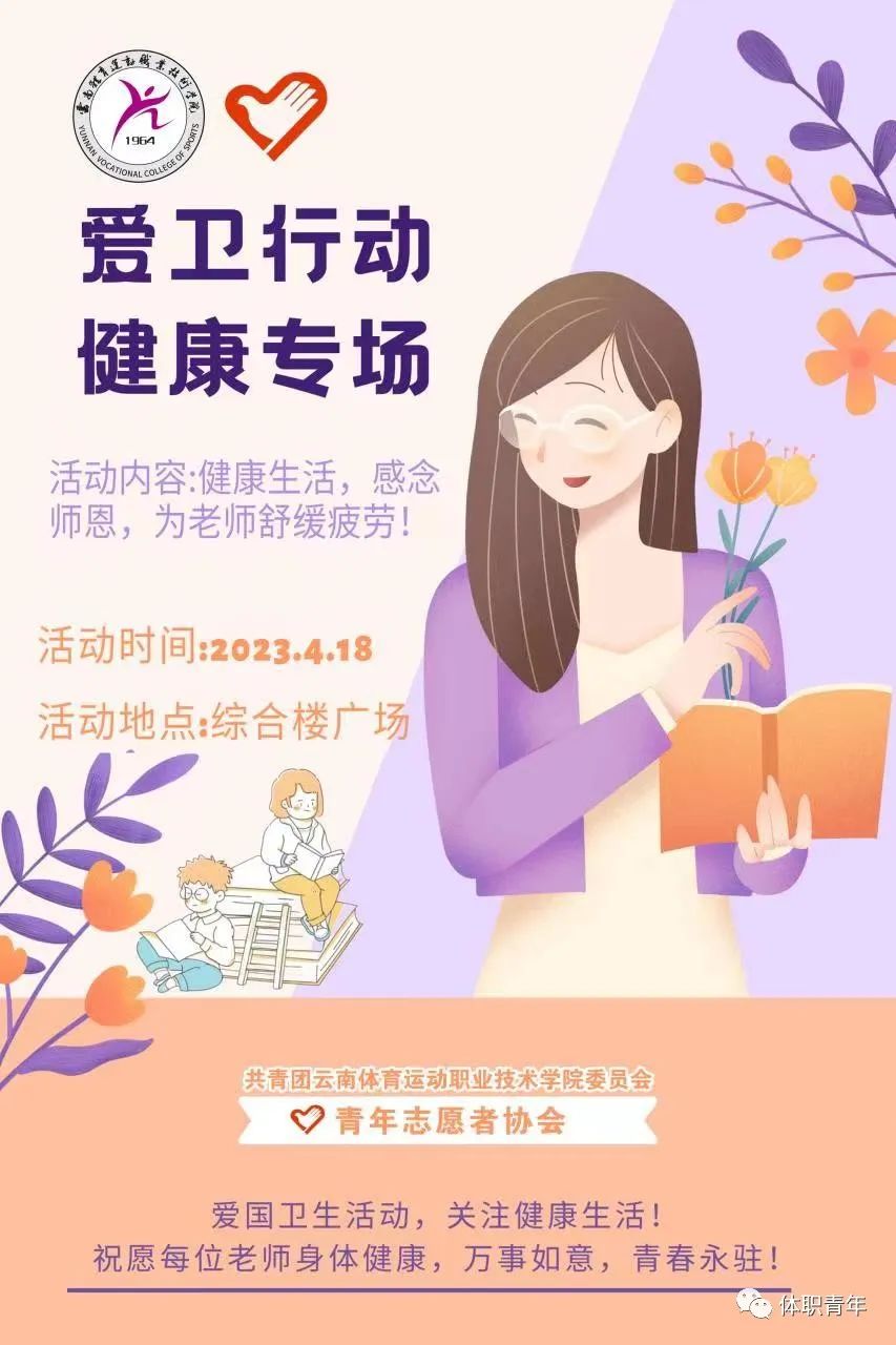 为全面贯彻党的二十大精神,深入落实习近平总书记关于爱国卫生运动的重要指示精神,根据云南省爱卫办、云南省文明办、健康云南行动推进办《关于开展第 35 个爱国卫生月活动的通知》(云爱卫办发〔2023〕2 号)要求,best365青协决定于本周二在学校广场举行“爱卫行动、健康专场”活动,组织best365体育保健按摩专业的同学给老师们按摩放松。