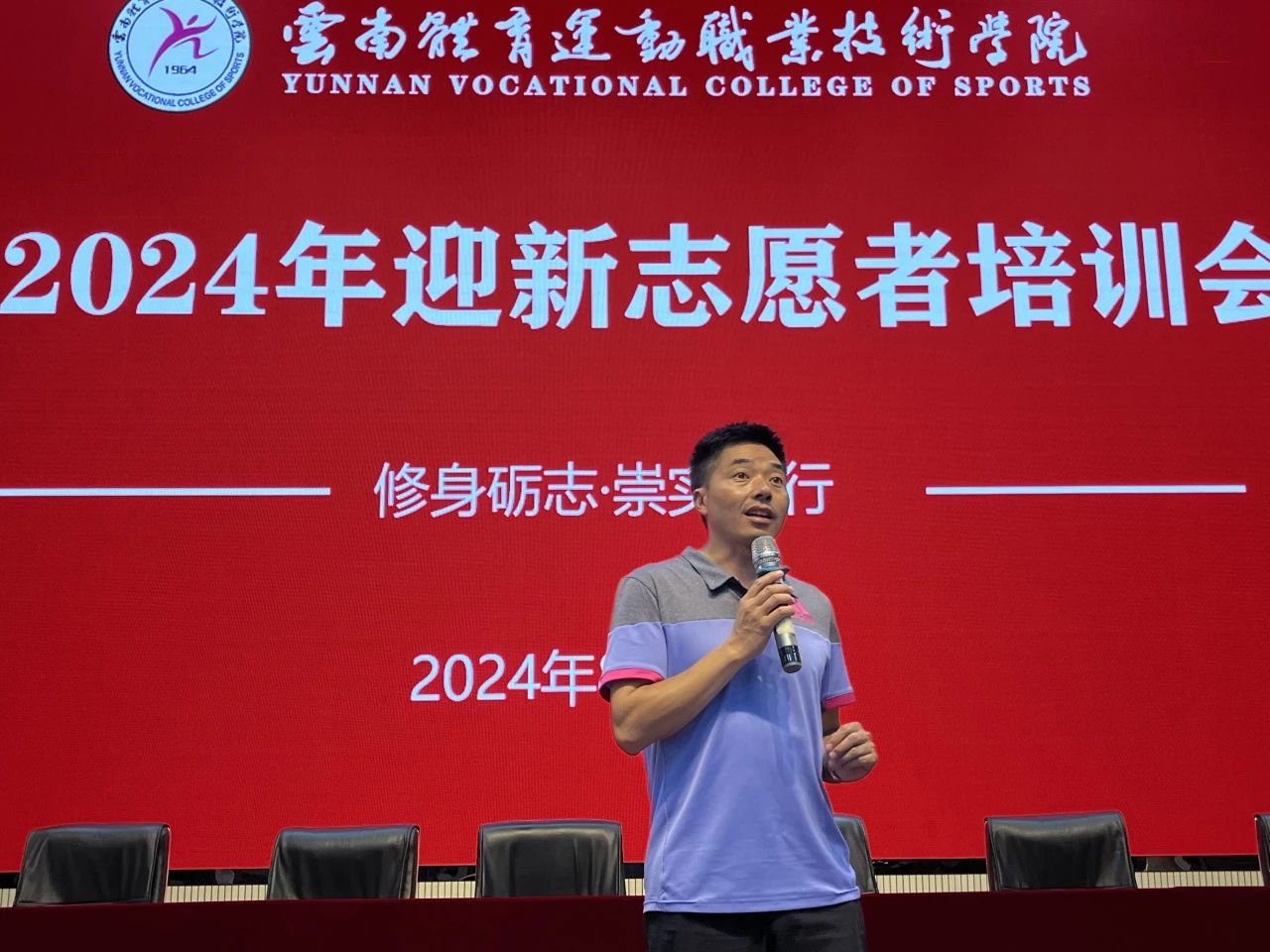 ▲ 校团委书记陈明照为志愿者培训