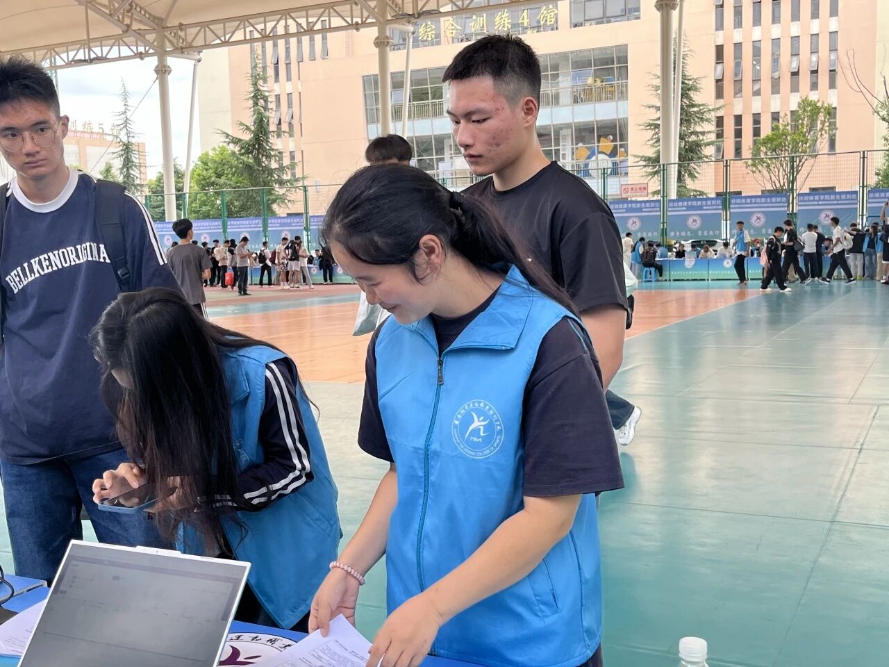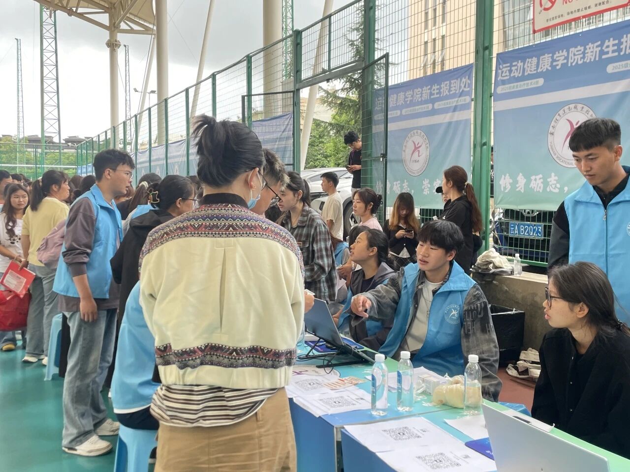 为了让小萌新们“少跑腿、不迷路”,学校把全校各个二级学院搬进了排球场,实行“分区设点、一站式服务”给新生们提供了极大的便利。