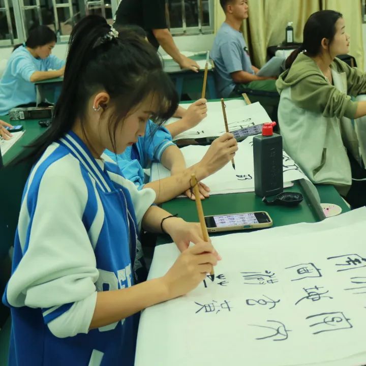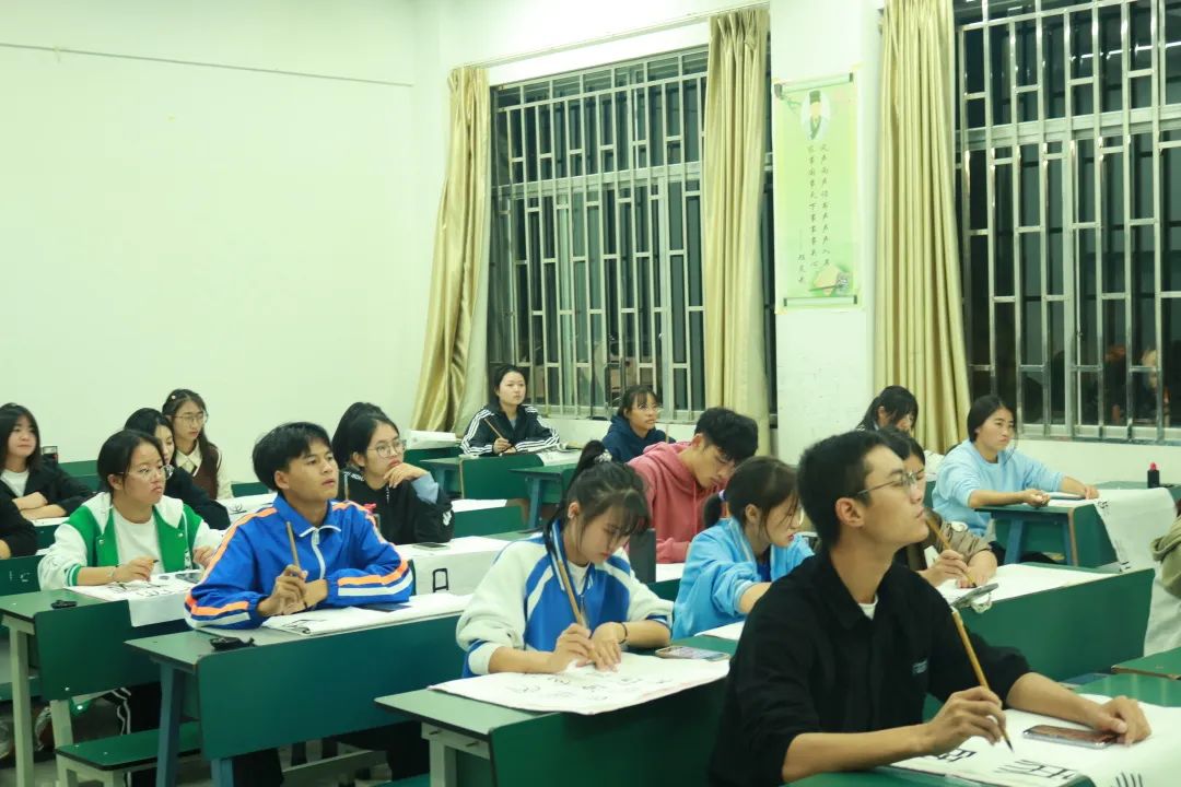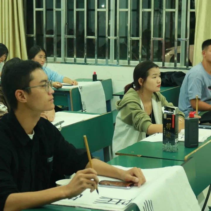上周三,19:00~21:00在云帆楼103开展了社团活动。此次社团活动由石老师带大家学习了篆书,以及临摹篆书。篆书不能描,需一笔成型,一步到位,不然会越描越粗,也不美观,注意九宫格的位置,写出自己的风格。